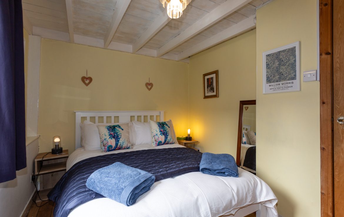 We have a double bedroom to the front of the property. In addition to open plan living/kitchen/utility room there is a full bathroom with a bath and overhead shower. Upstairs there is a twin bedroom. The cottage has a wood burning stove, underfloor heating and electric radiators. A gas boiler provides constant hot water.