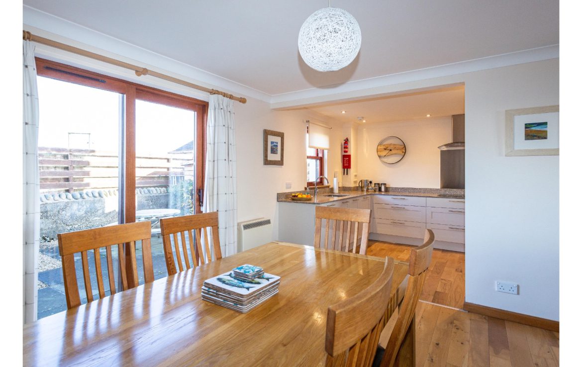A well-equipped kitchen comes with a range of appliances and there is also a breakfast bar, great for a morning coffee. Enjoy a delicious meal around the dining table which seat 8.