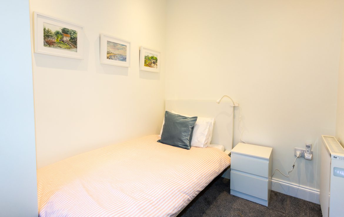 There is a sitting-out area at the front of the property with direct access to a shared lawn area. A car parking space is available at the front of the property and there are electric vehicle charging points in the nearby car park approx.. 50m away.