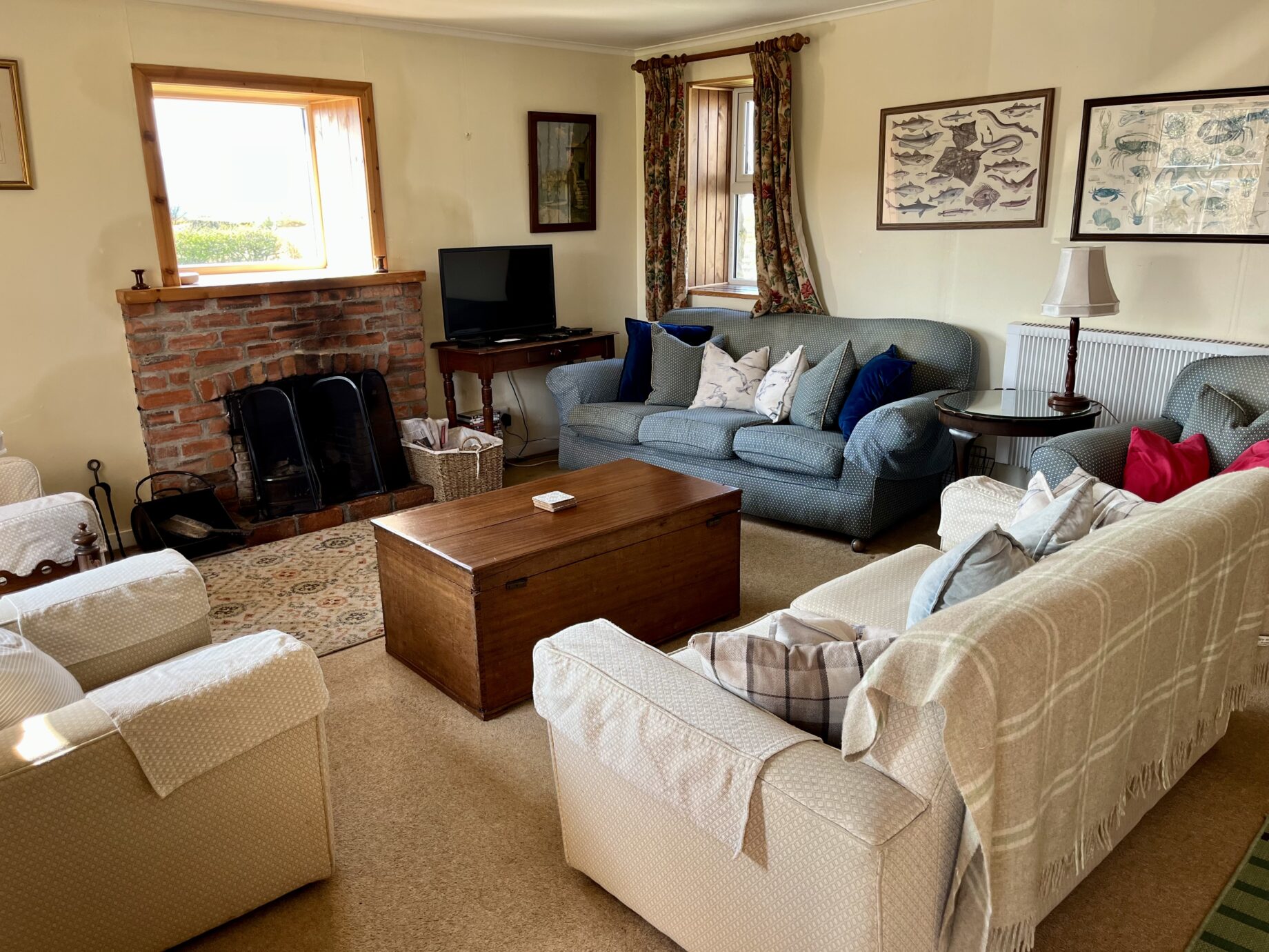 - Modern comforts: Fully-fitted country kitchen with modern appliances and a separate utility area with laundry facilities. A large open plan living/dining room with flat-screen TV & Freeview, DVD player and DVD’s, board games and a cozy open fire is perfect for relaxing with the family after a busy day exploring. A smaller, cosy sitting room with an open fire is the ideal place to curl up with a book. Wi-Fi is available.