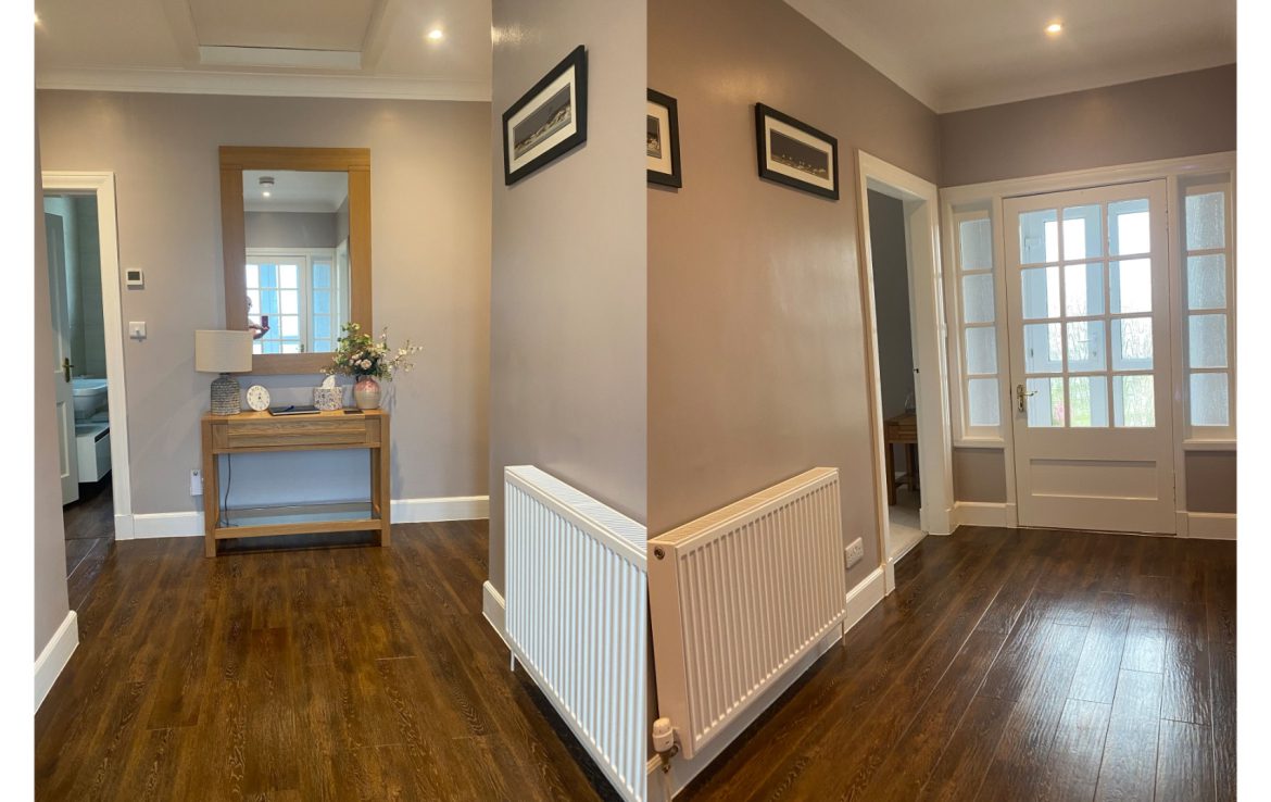 The large bright hallway leads to two bedrooms. One kingsize and one twin both providing plenty of storage.