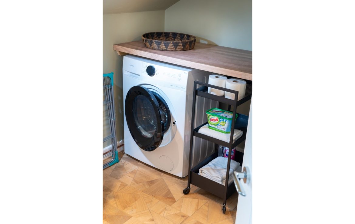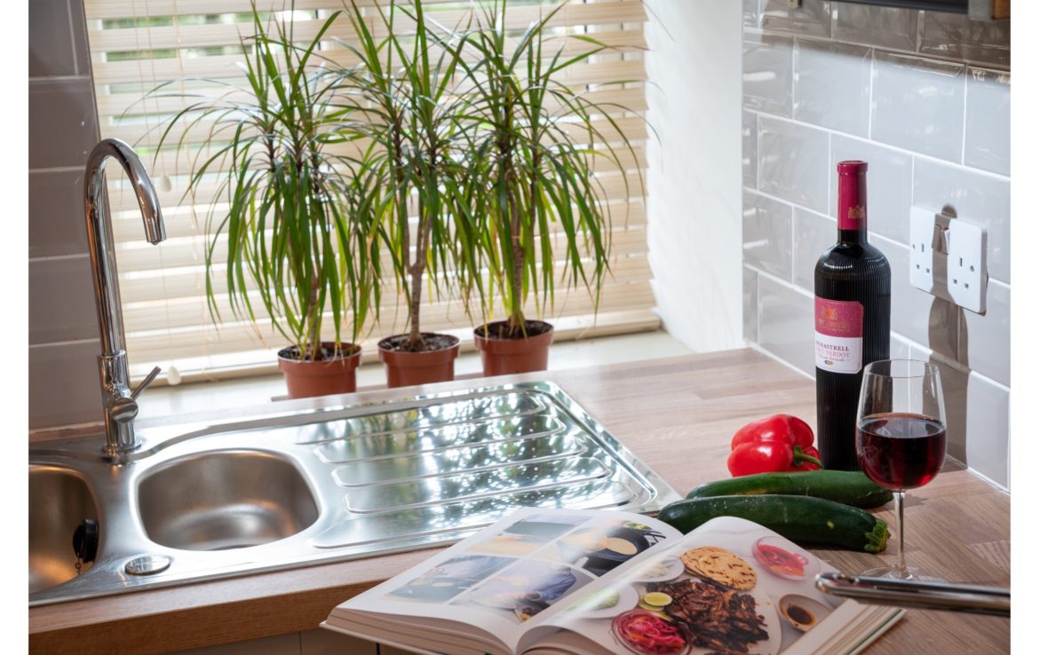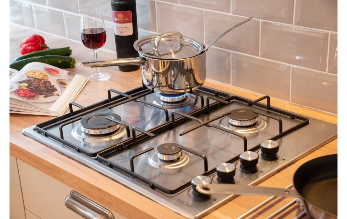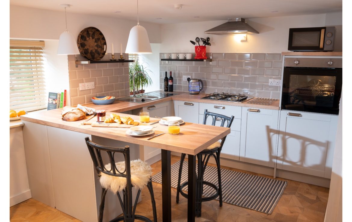 The kitchen has a gas hob, built in oven, microwave and under counter fridge. It’s very well equipped.
