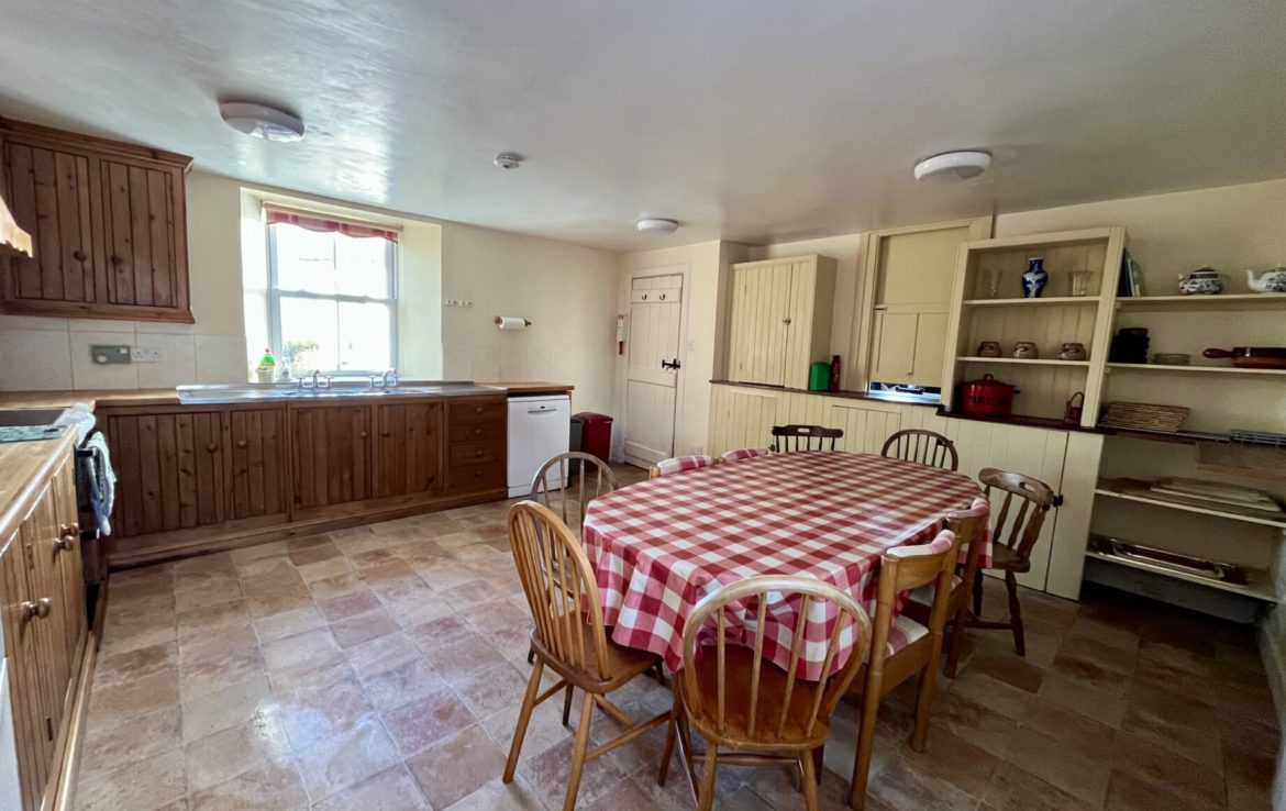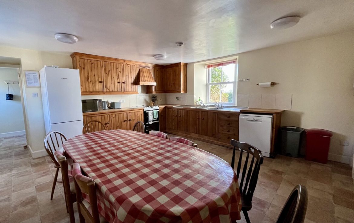 The fully fitted kitchen has equipment which includes electric cooker, fridge/freezer, dishwasher, microwave, and double stainless-steel sink. There is also a large kitchen table.