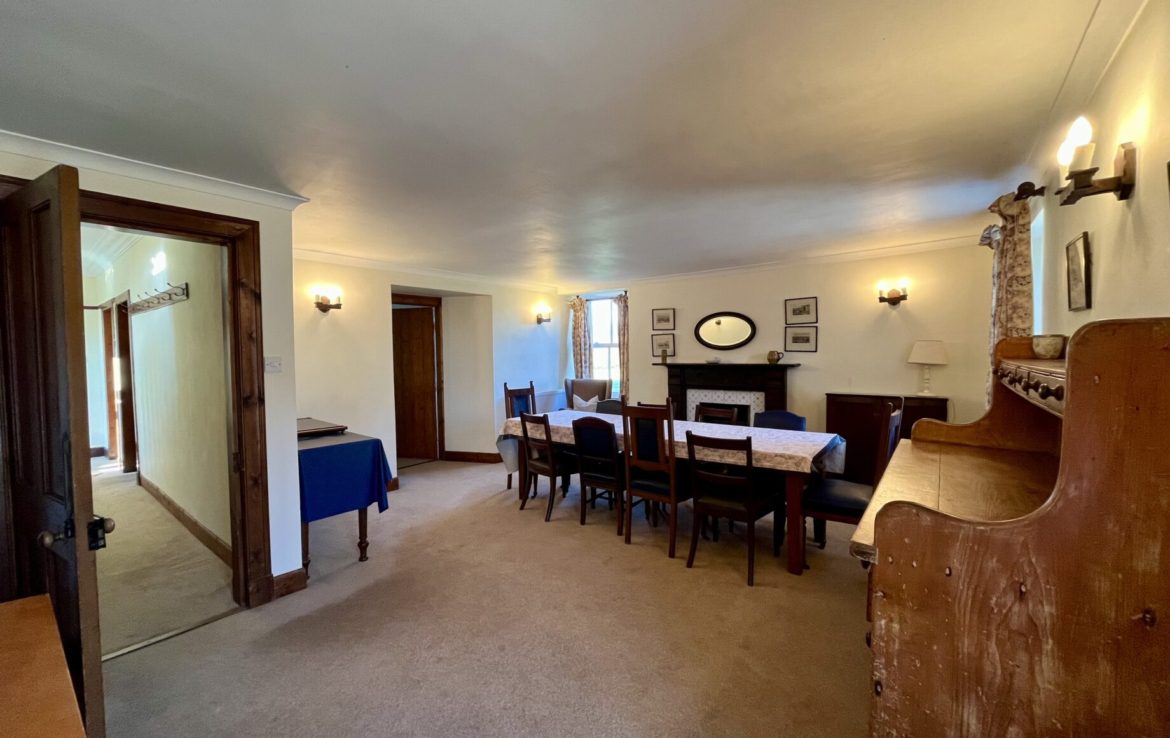 The large dining room has a 10-seater table. There is also a serving hatch, which opens to the kitchen and an open fire making it a great space for entertaining.