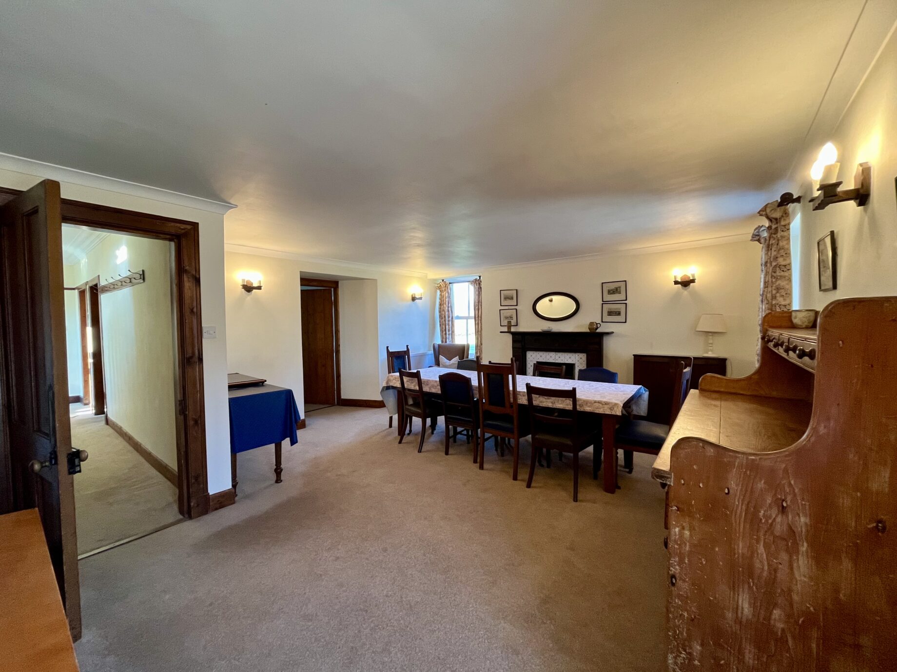 - The large dining room has a 10-seater table. There is also a serving hatch, which opens to the kitchen and an open fire making it a great space for entertaining.