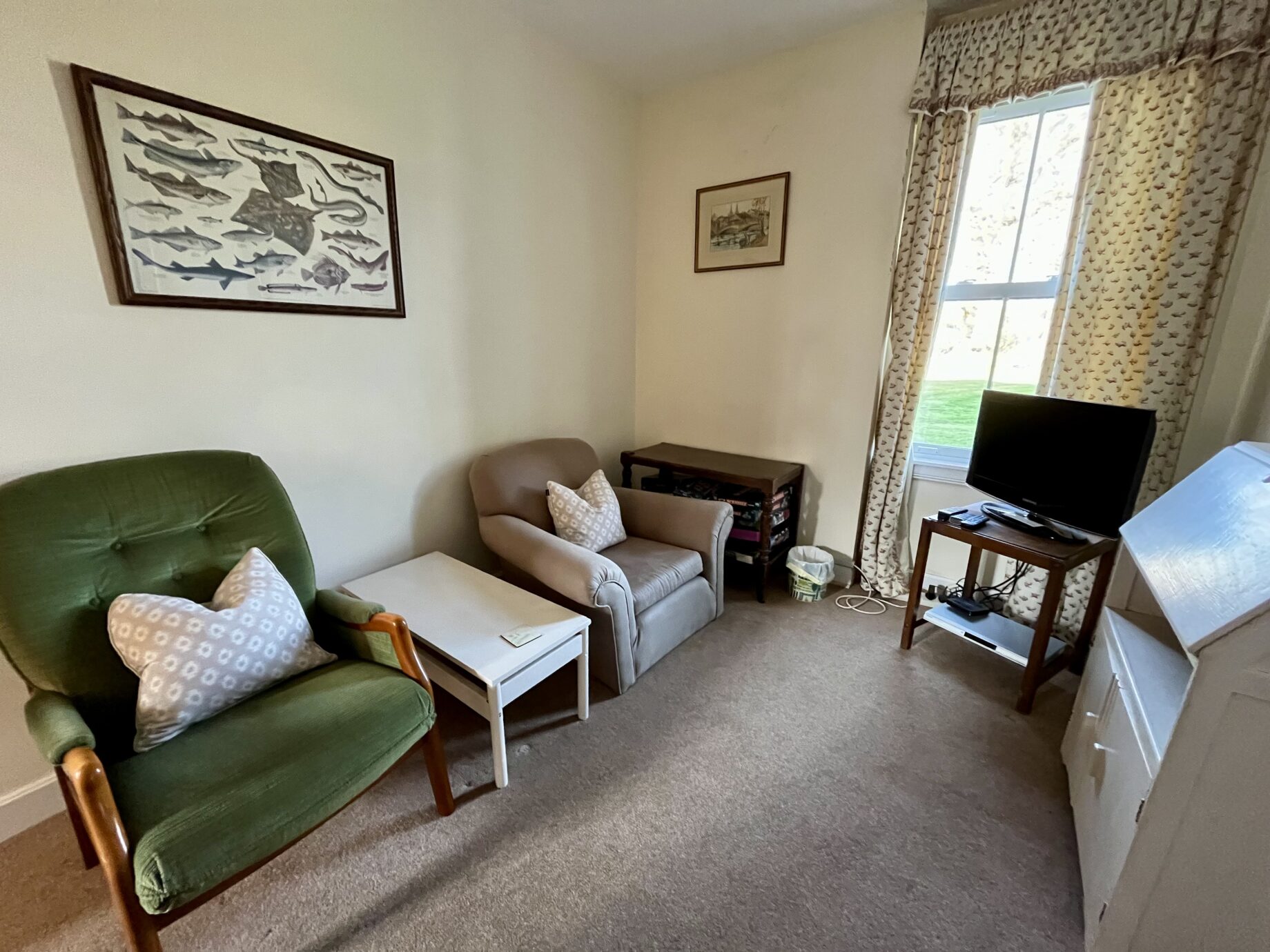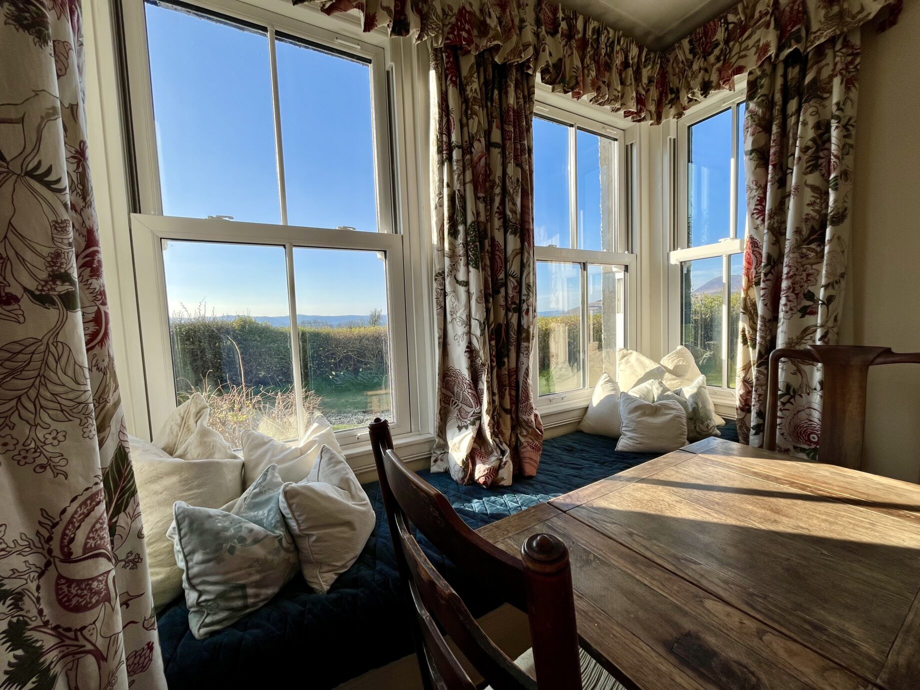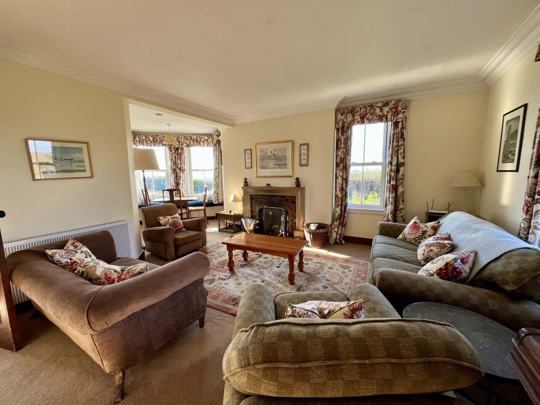 - The main sitting room is spacious with an open fire and a bow window, with fine views across the Kilbrannan Sound to Kintyre. The Wi-fi router is in this room.