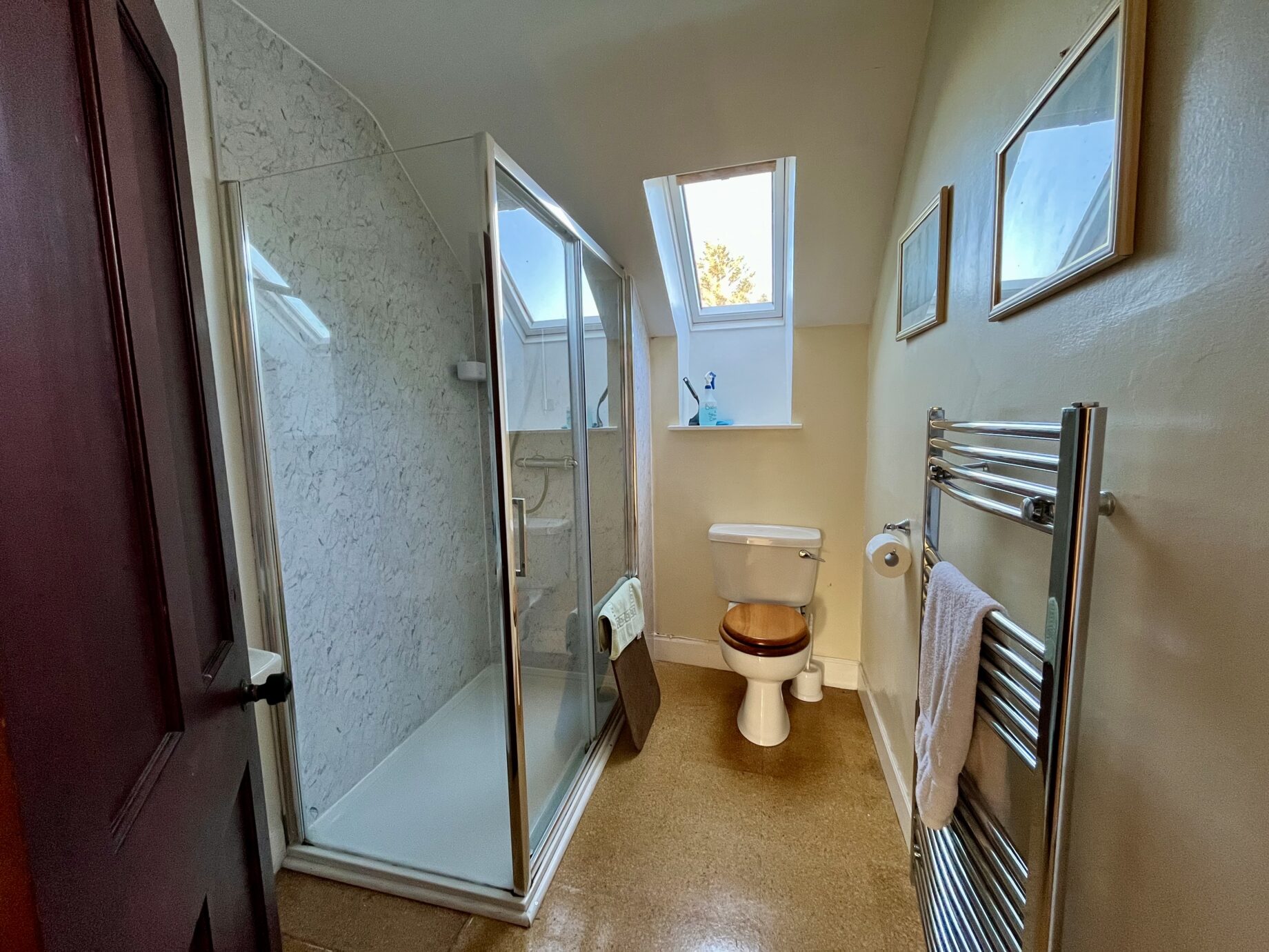 - The front porch has coat hooks with a heater below – the perfect place for drying wet coats and boots.