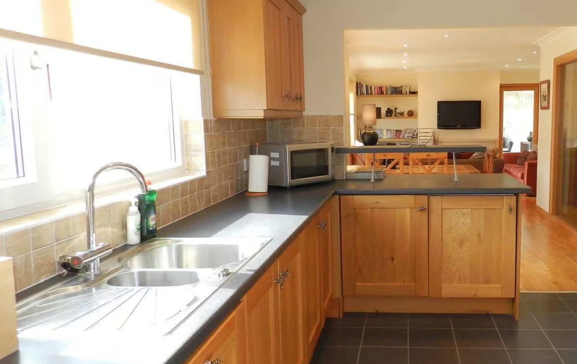 There are four bedrooms (two of which are downstairs, ideal for guests with limited mobility) and four bathrooms, making this a very comfortable holiday home for eight guests to enjoy.
