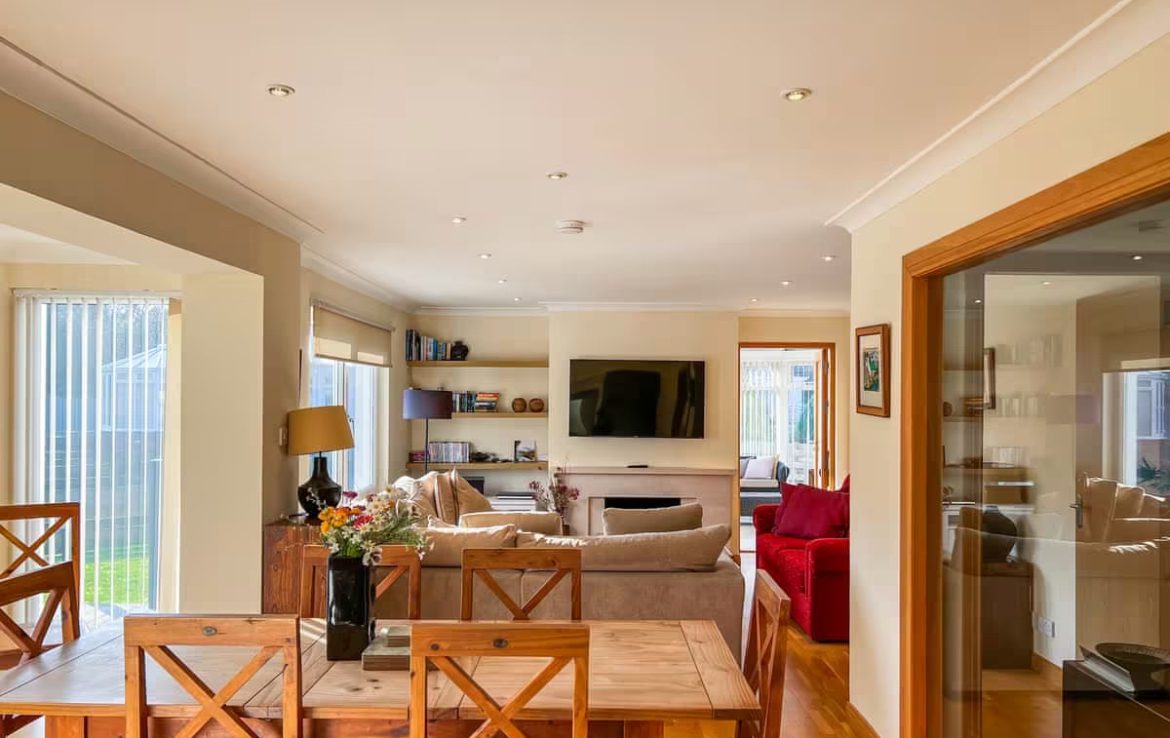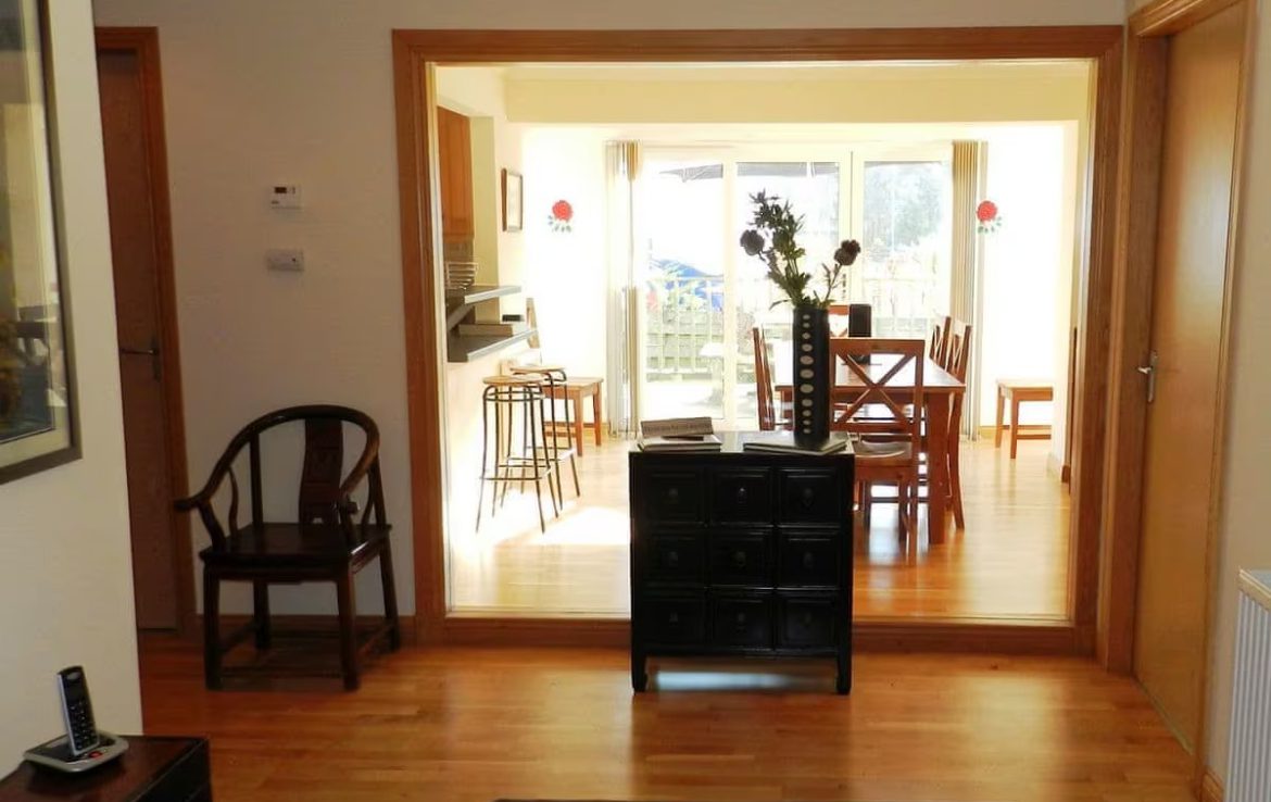Central heating, electricity, bed linen, towels and Wi-Fi included. Travel cot, highchair and stairgate. Large enclosed lawned garden with decking and garden furniture. Private parking for 4 cars. No smoking. Please note: There are 4 steps to the decking.
