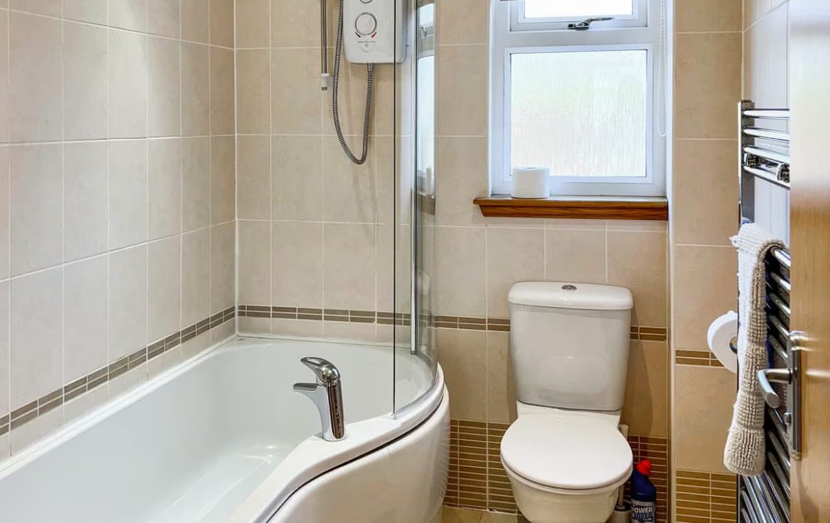 Bathroom: Bath With Shower Over, Heated Towel Rail, Toilet