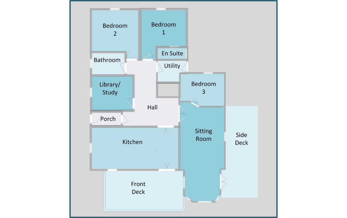 Accommodation includes 3 bedrooms for 6 people (2 king-sized beds and 2 single beds); en-suite and family bathroom; library /study; large, fully-equipped kitchen/diner; large sitting room with dining area and sun-room with sea views; 2 decking areas to the front and side.