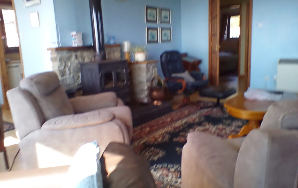 Sliding door opens onto patio area and well kept lawn. Electric central heating throughout with a multi fuel stove in the lounge , which also has T.V and DVD player. Ample parking and a secure garden.