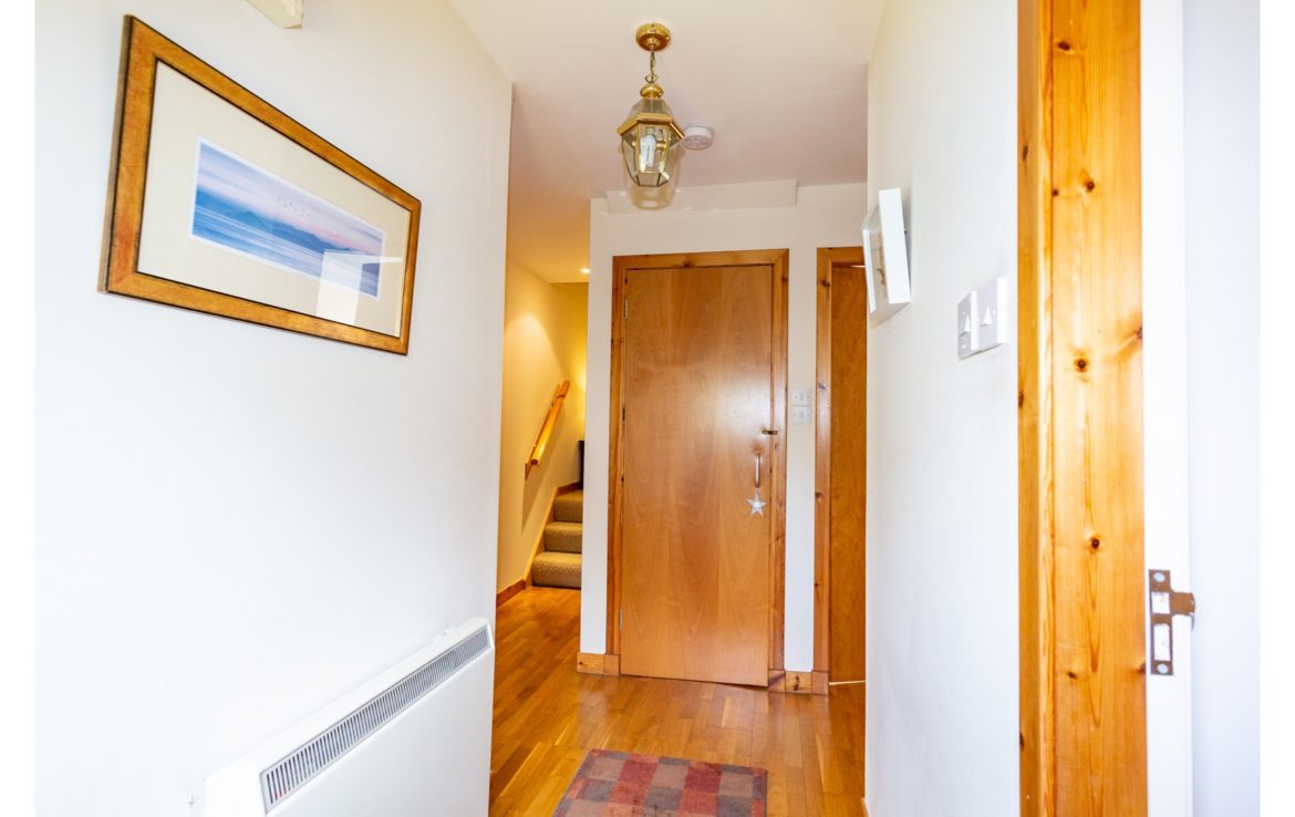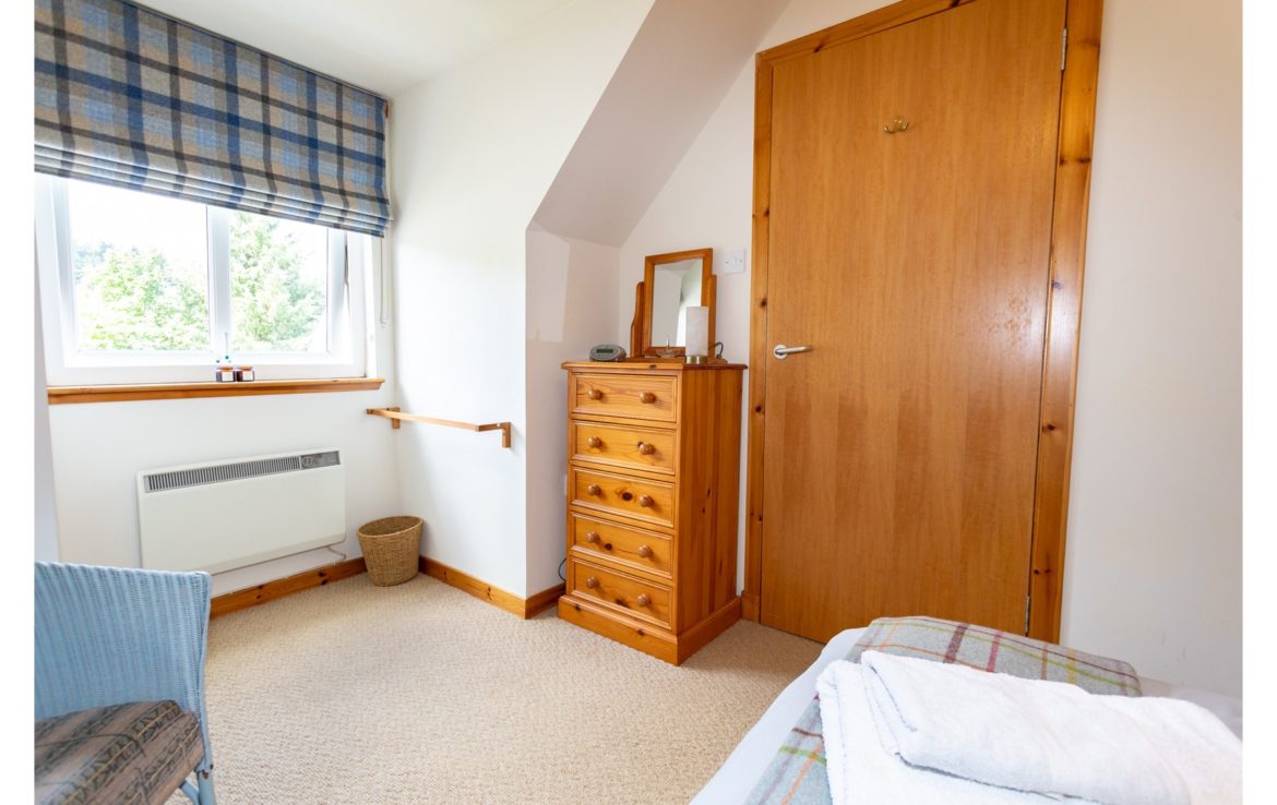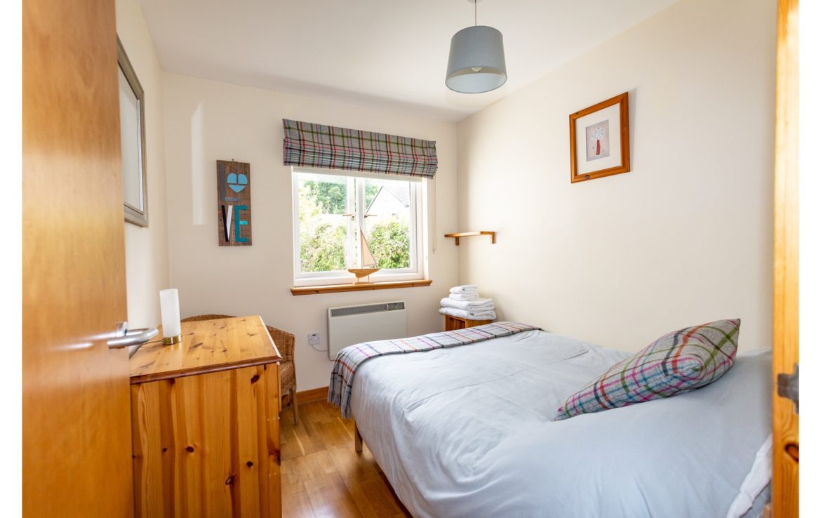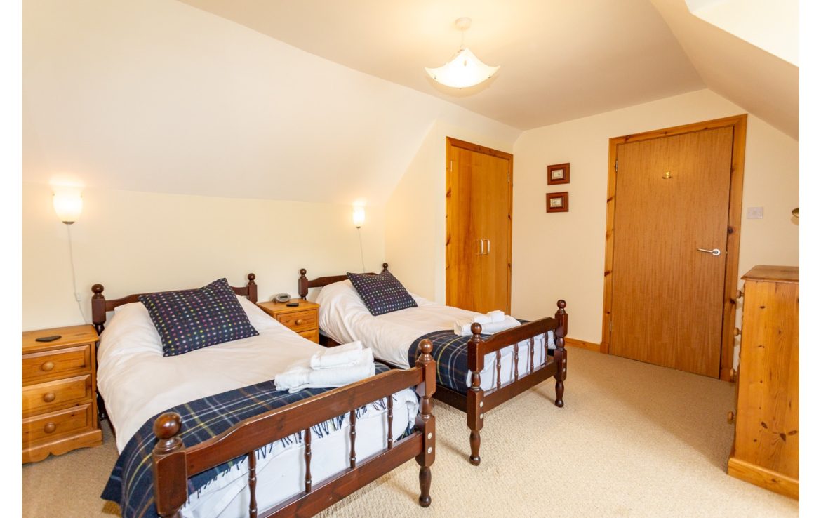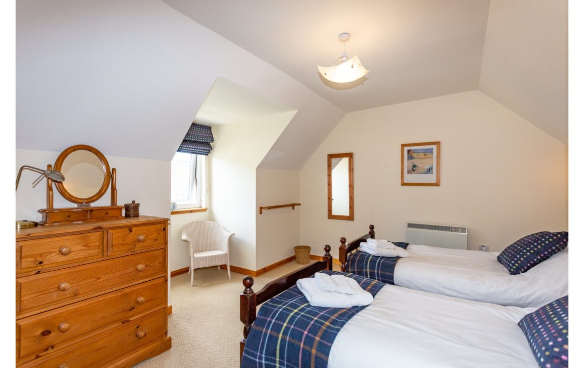 Upstairs there is a double and twin room. Both bedrooms boast views of Goat Fell. Each bedroom comes with a clock radio and hair dryer. All bed linen and towels are included.