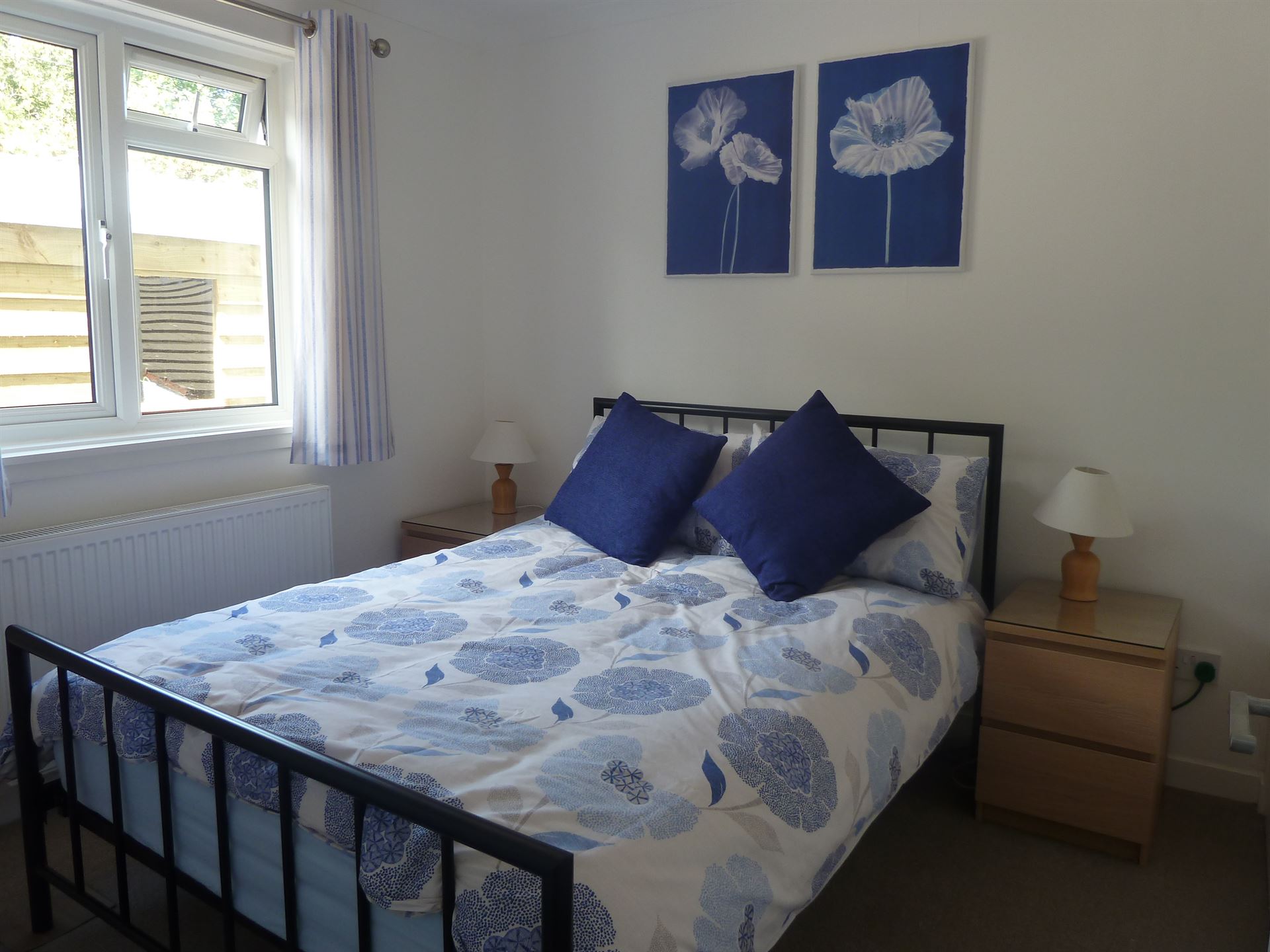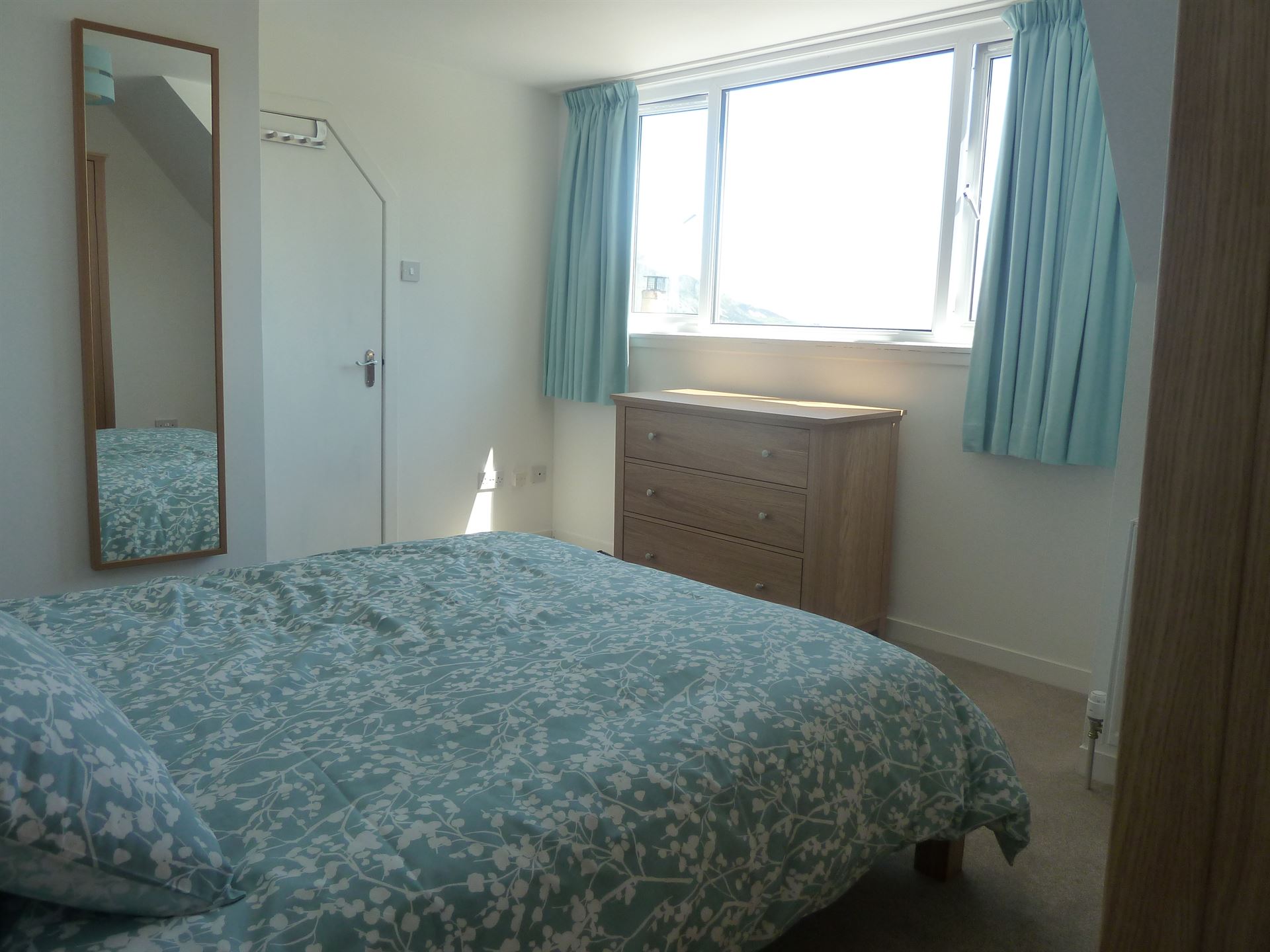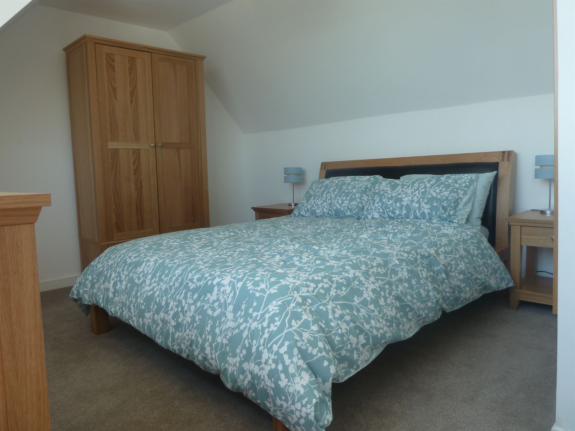 - Bedroom with double bed with large built in wardrobe and bedside cabinets
