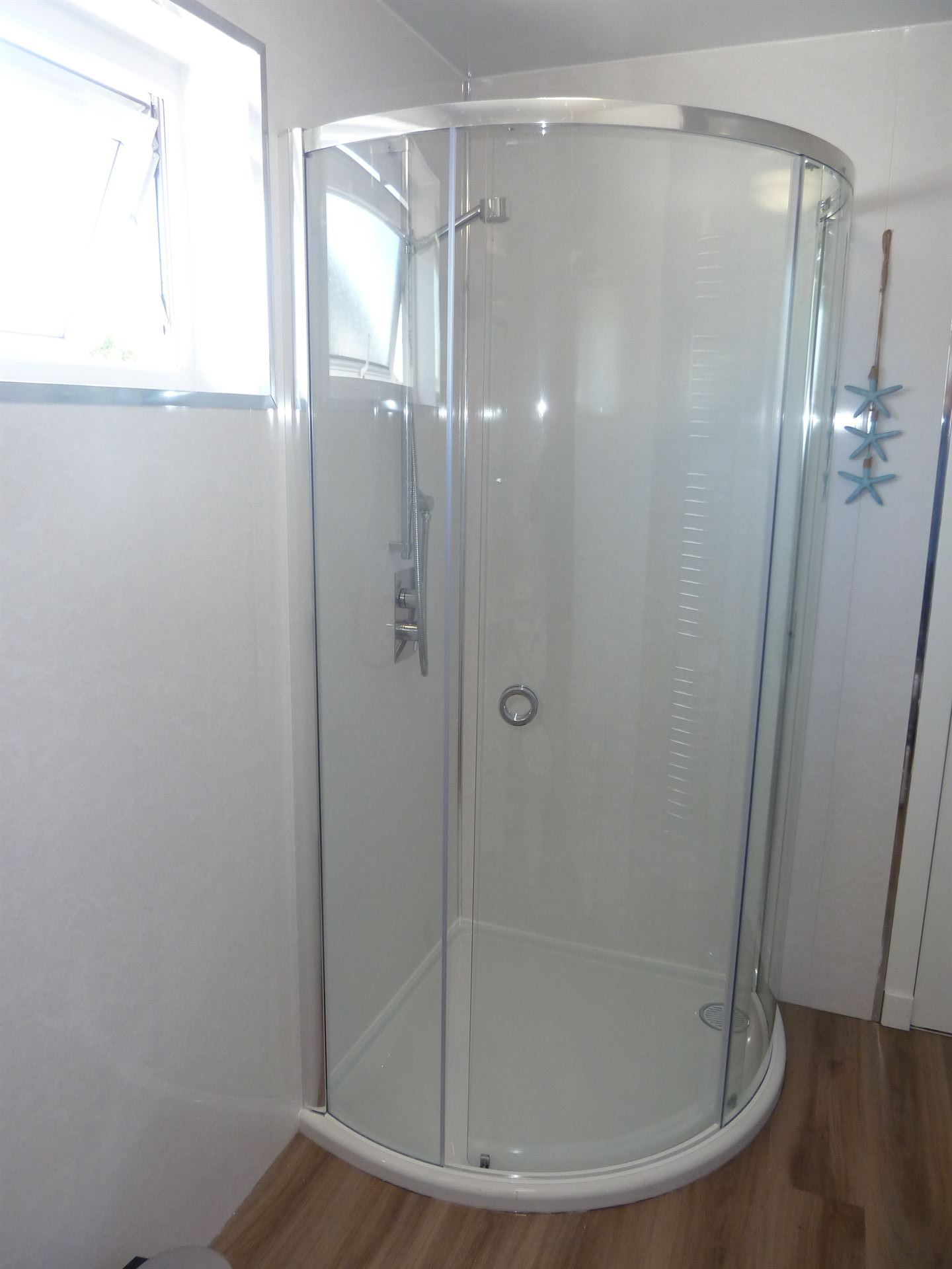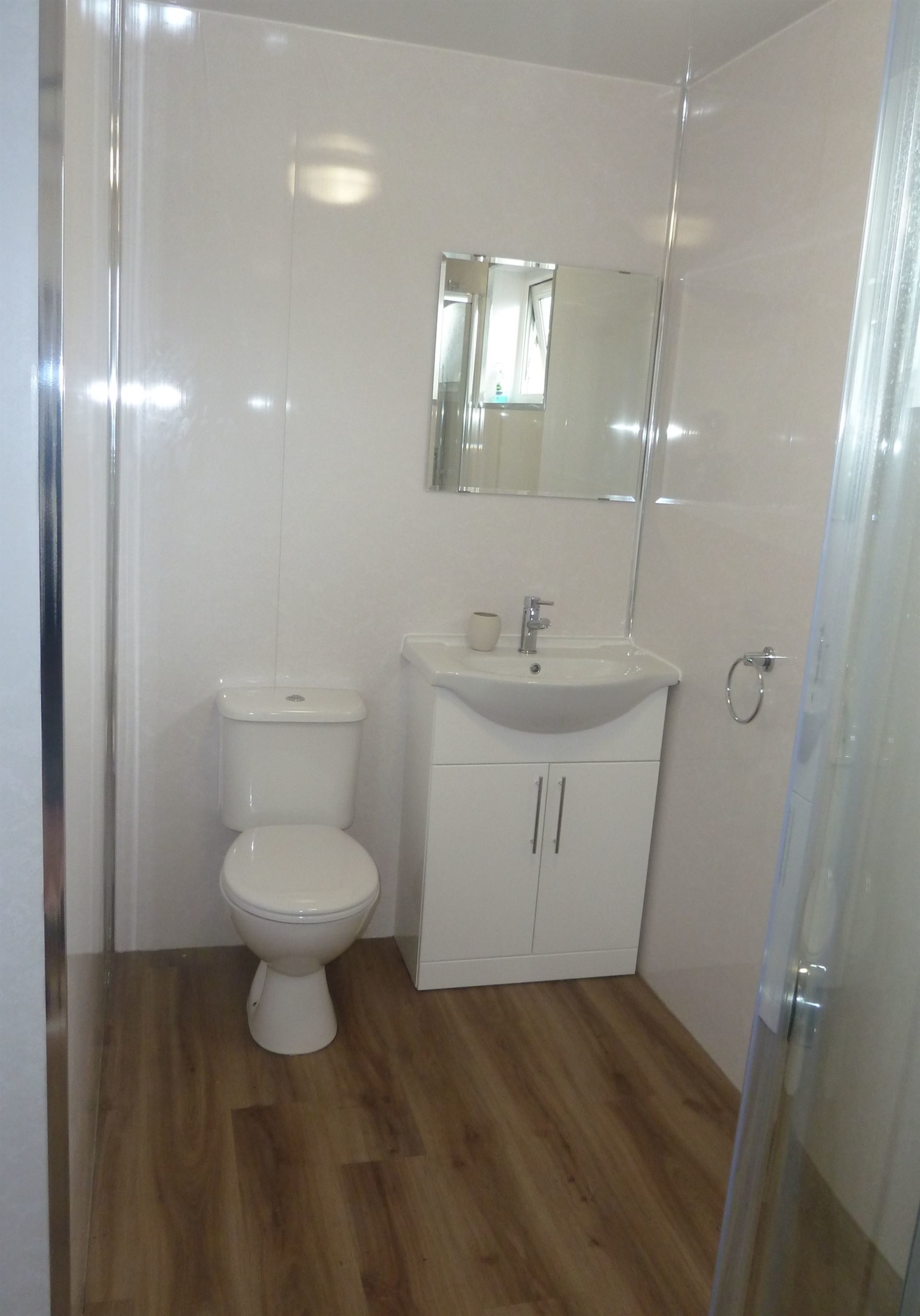 - Large downstairs toilet with WC, sink and cabinet and large walk in power shower and heated towel rail.