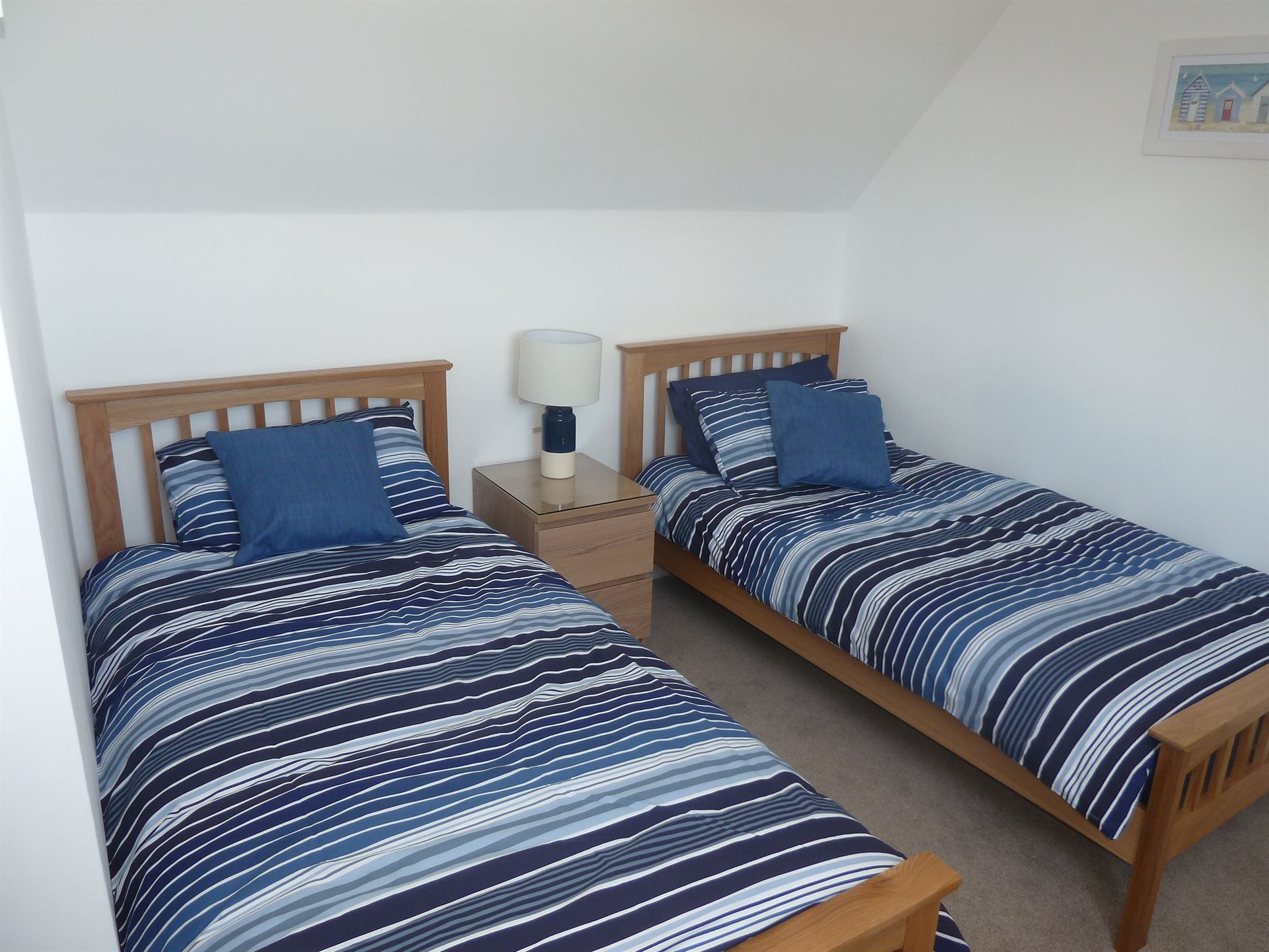 - Twin bedroom with 2 full size single beds and storage.