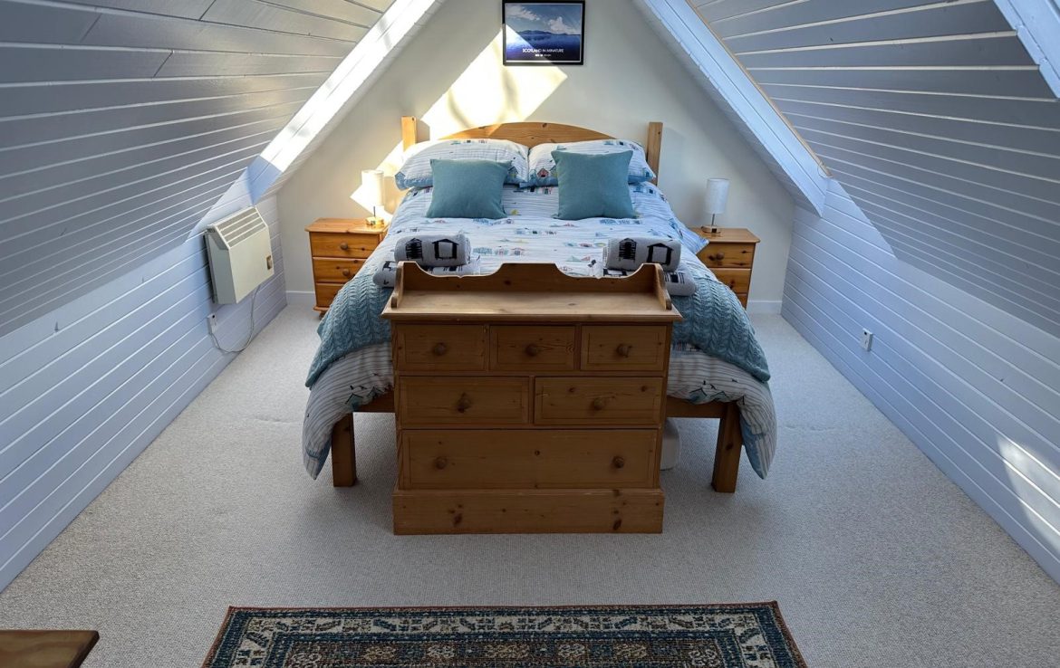 Newly renovated and refurbished with cosy furnishings and décor, Elmbank Cottage has some interesting and unusual features. A spiral staircase leads to the attic double bedroom. Downstairs is a single bedroom with external door, kitchen and lounge with the open fire. There is a wardrobe in the single bedroom on the ground floor for the use of guests.
