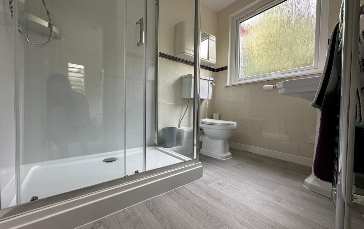 The bathroom is also on the ground floor and has a large shower with electric towel rail.
