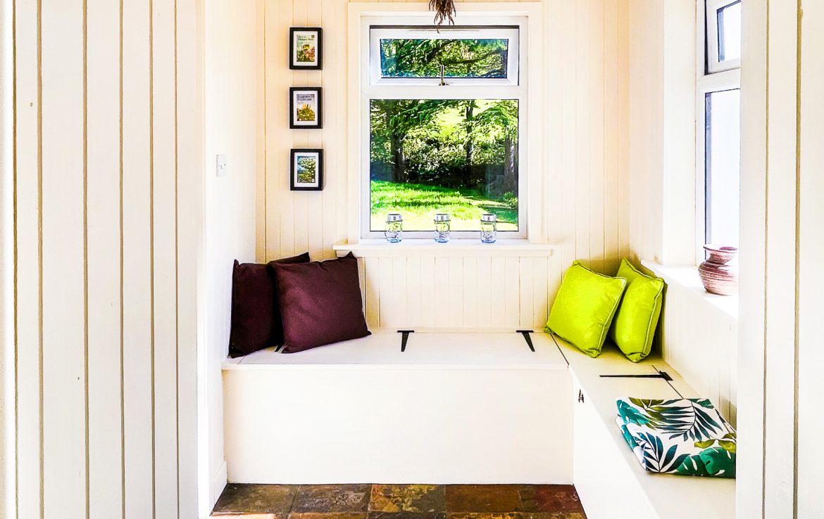 Enter through the front porch with ample space for shoes and coats. Window seating to enjoy garden views