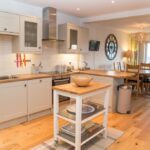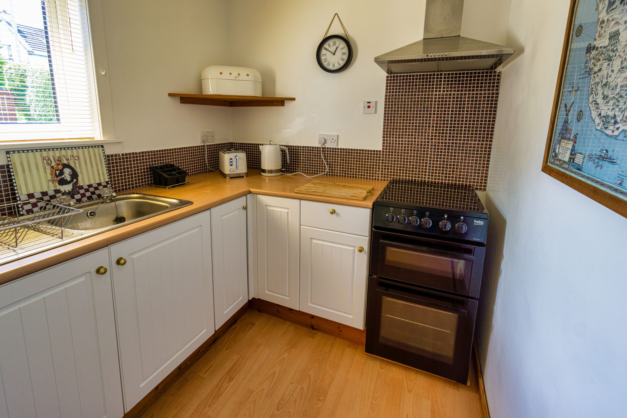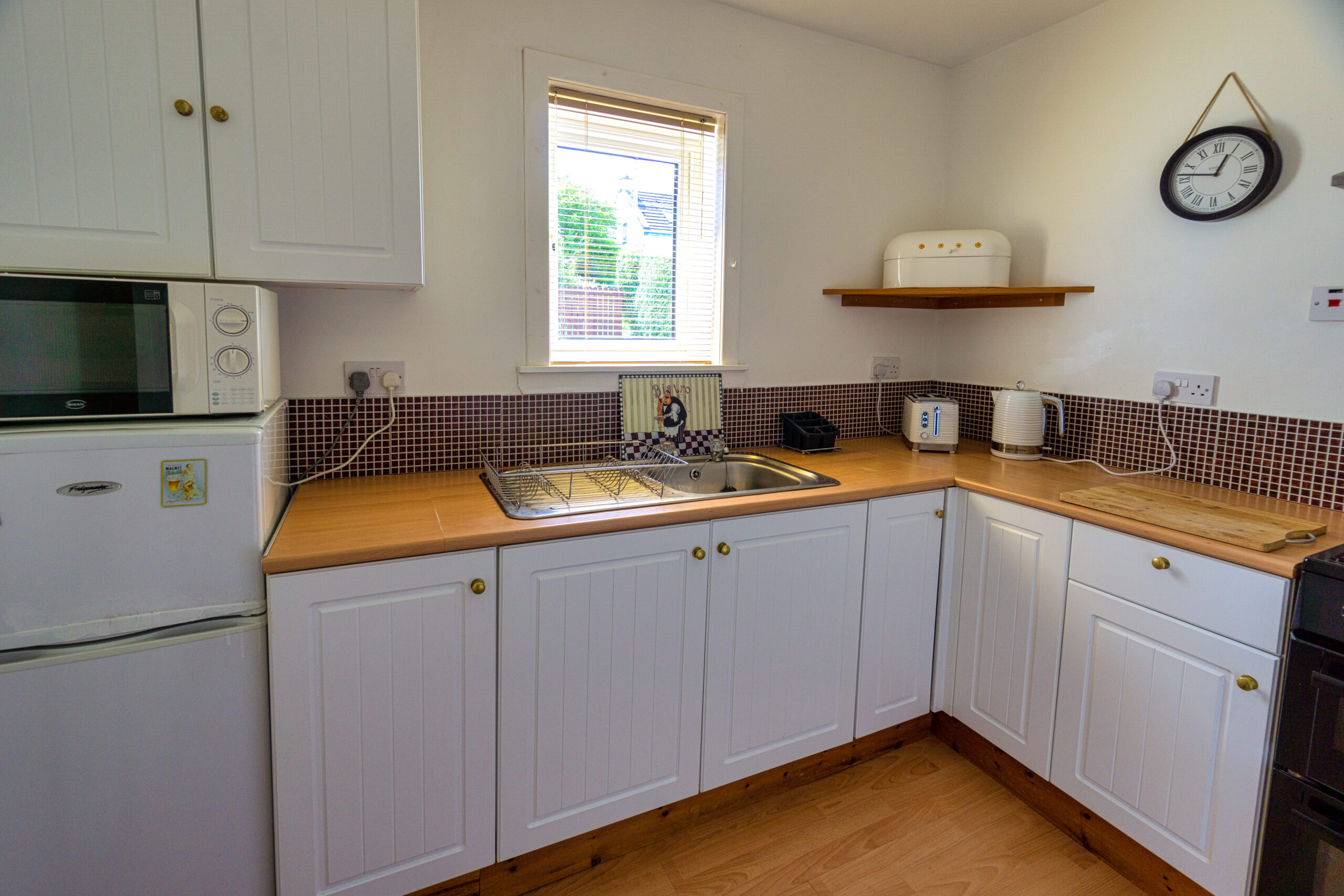 - Kitchen bright and modern with ample storage space, microwave, fridge/freezer, and electric cooker. Washing machine is available for use in the owner’s kitchen next door.