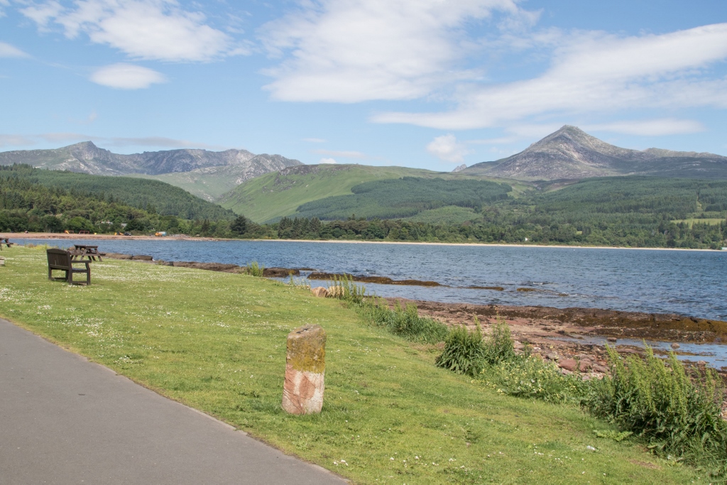 Goatfell View Annexe is in a quiet, elevated position close to all Brodick village amenities. It has panoramic views over Brodick Bay to Goatfell, Brodick Castle and across to Isle of Bute, the Cumbraes, Millport and the mainland.