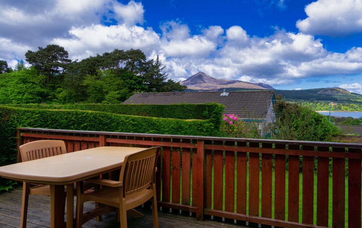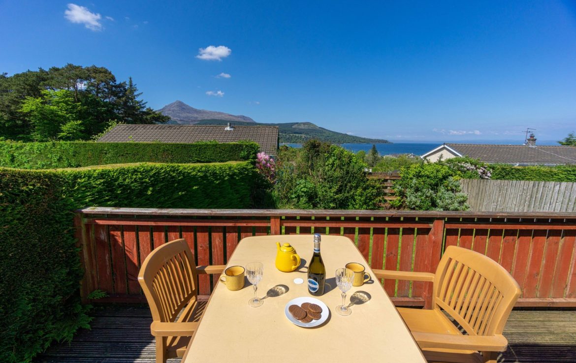 Our decked area at the front of property overlooks these views and has a table and chairs for outdoor use. Goatfell View gardens are separate from the main house next door. The south garden at rear of property has relaxing garden furniture and gets the sun all day.
