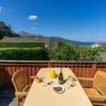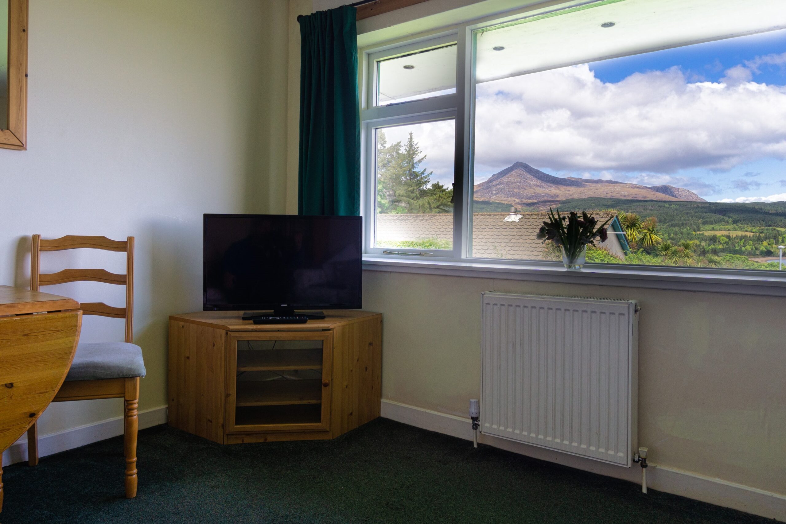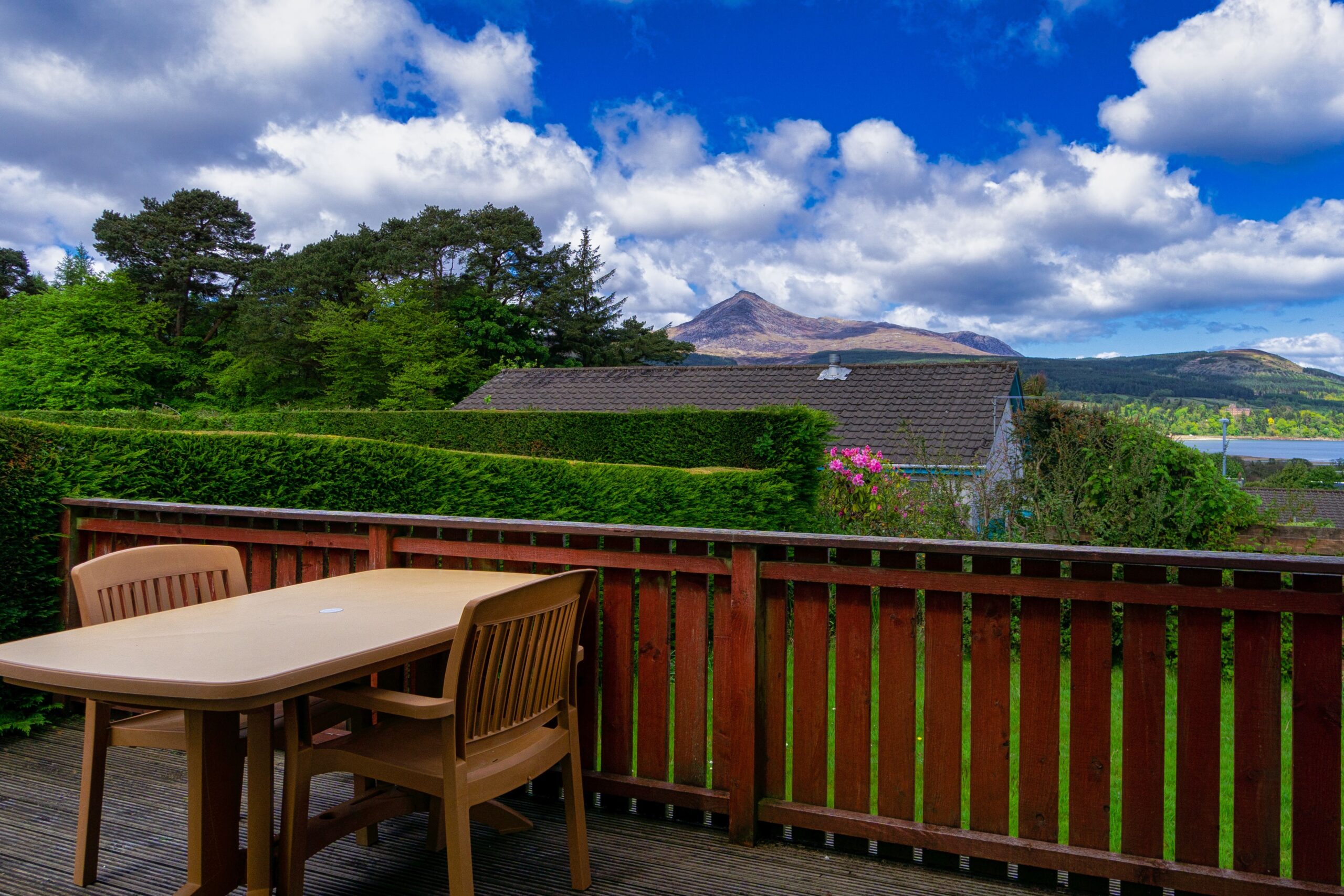 - Our decked area at the front of property overlooks these views and has a table and chairs for outdoor use. Goatfell View gardens are separate from the main house next door. The south garden at rear of property has relaxing garden furniture and gets the sun all day.