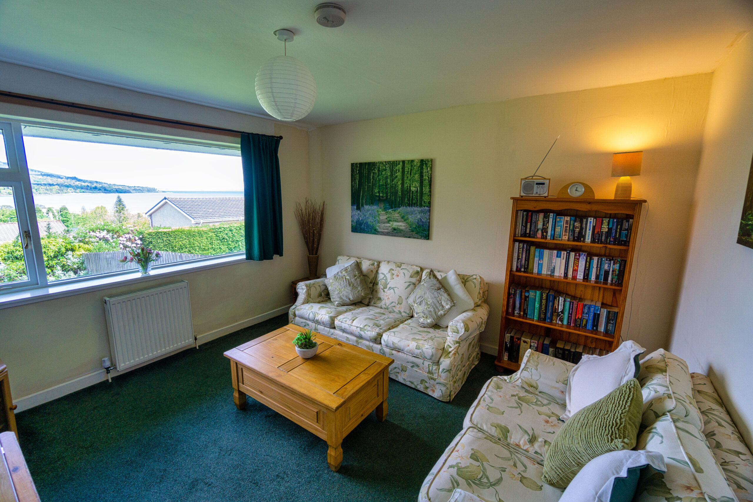 - Cosy lounge with comfortable cottage suite and dining table. TV, Netflix, and free Wi-Fi. CD player and digital radio provided. The large lounge window overlooks sea views, and the room is cosy with a large radiator.