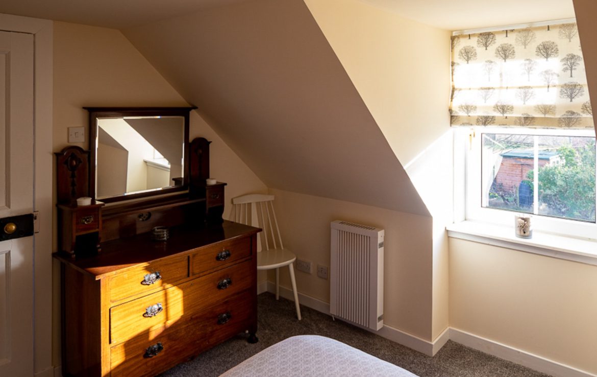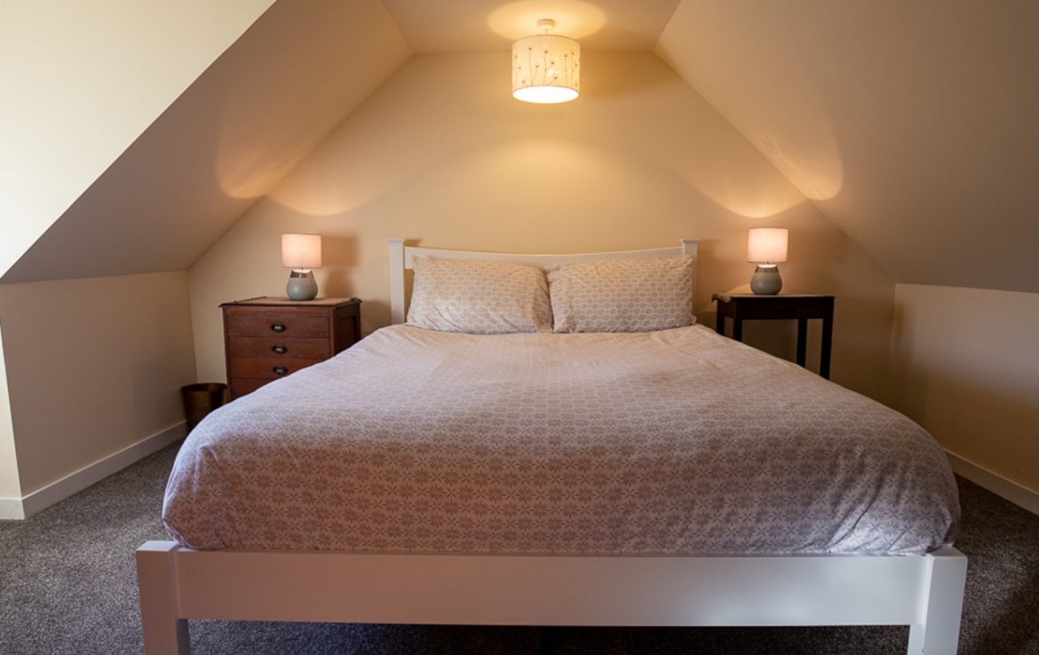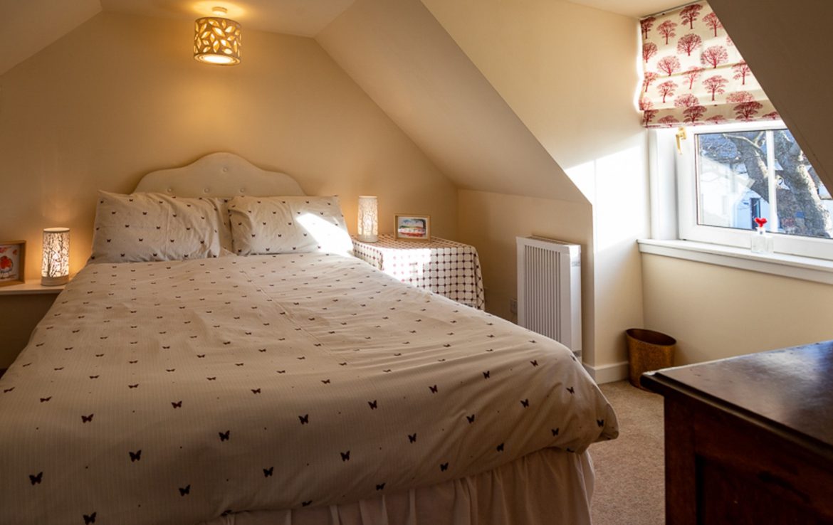 Upstairs there are two bedrooms, one with a King Size bed, the other with a double bed (linen supplied).