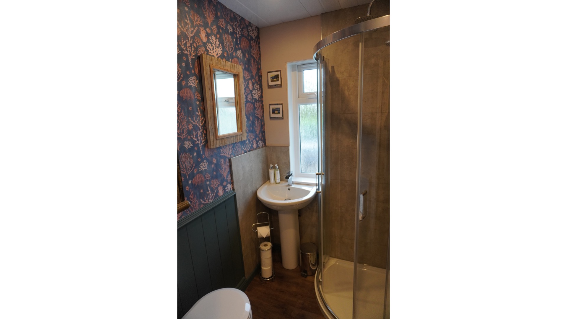 Front and rear spacious glazed enclosed porches offer ideal space for entry into house with muddy/ sandy dogs and wet coats/footwear. - 3 double bedrooms (2 king and 1 twin bedded ) all with built in wardrobe and storage. Large bathroom with walk in shower, Freestanding bath, WC and wash hand basin. Separate shower room with walk in shower , WC and wash hand basin.