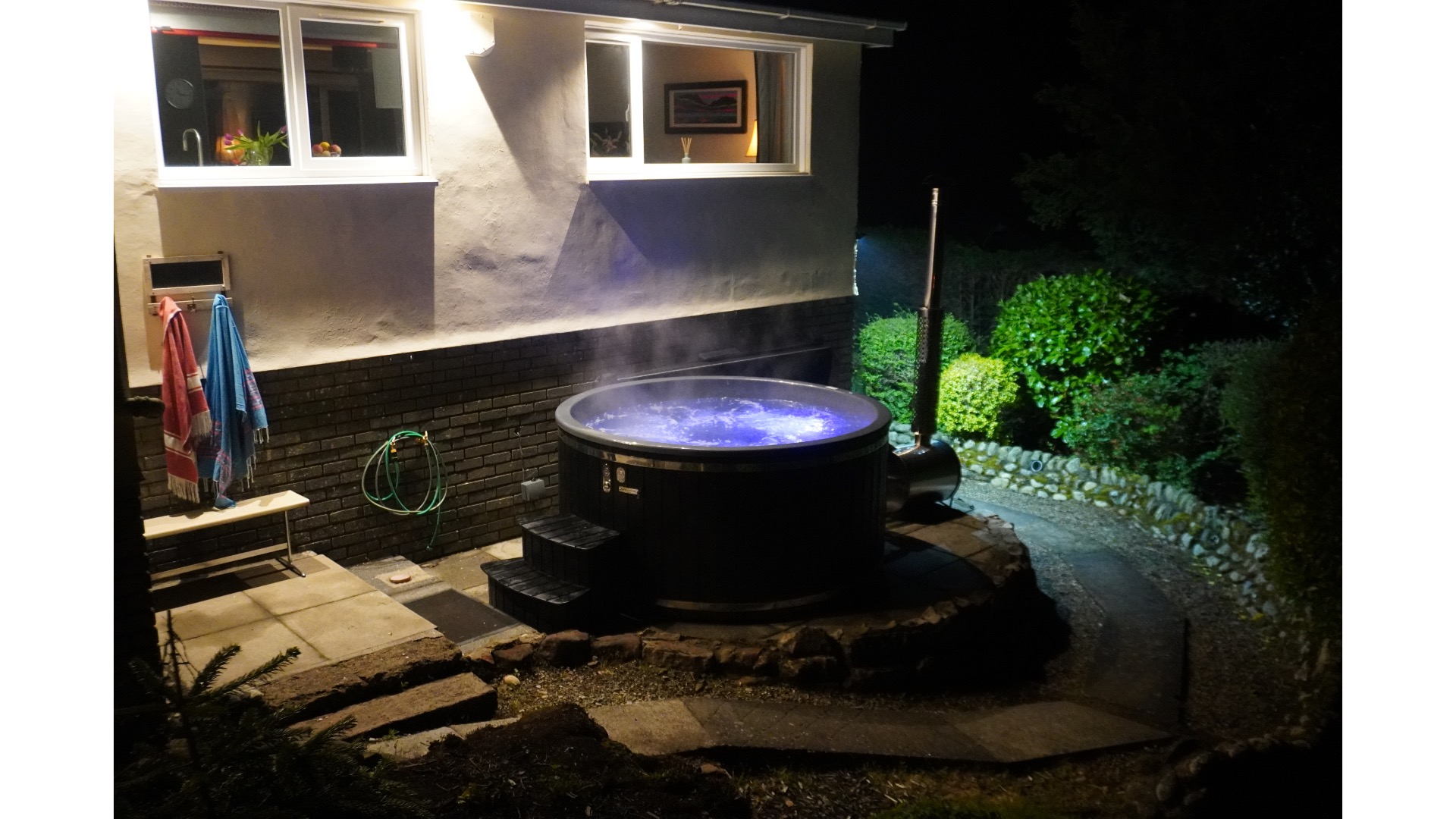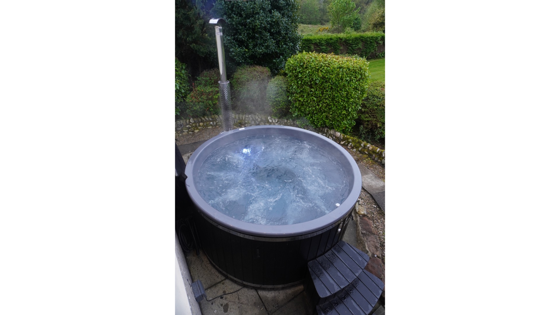 - Wood fired 6 person Hot Tub with spa jets. (Full instructions for use given). Wood provided