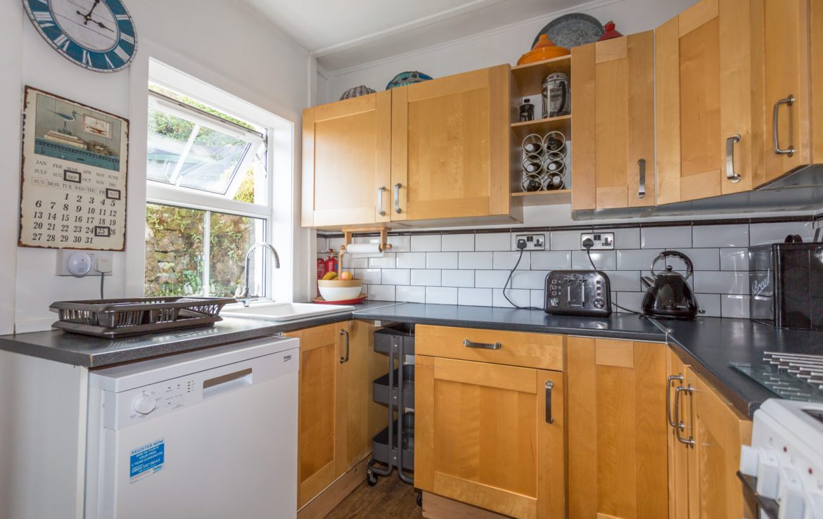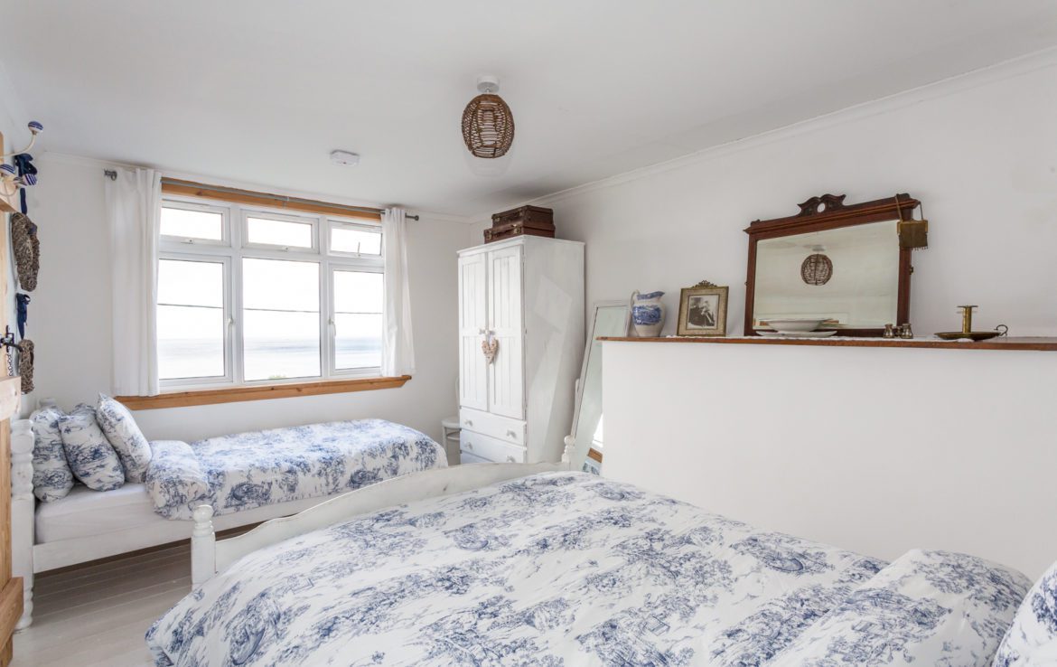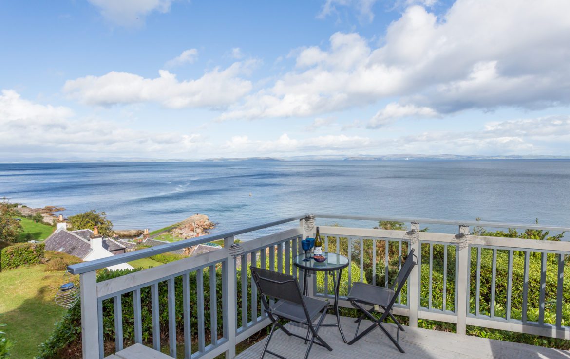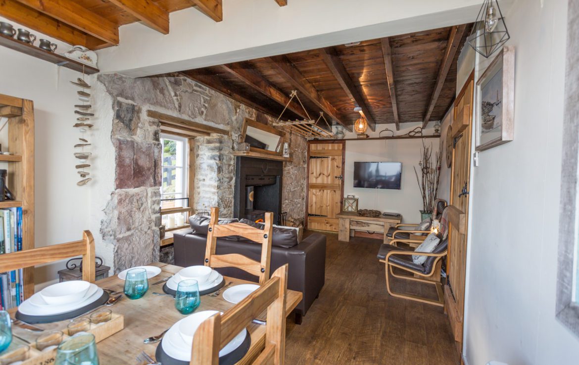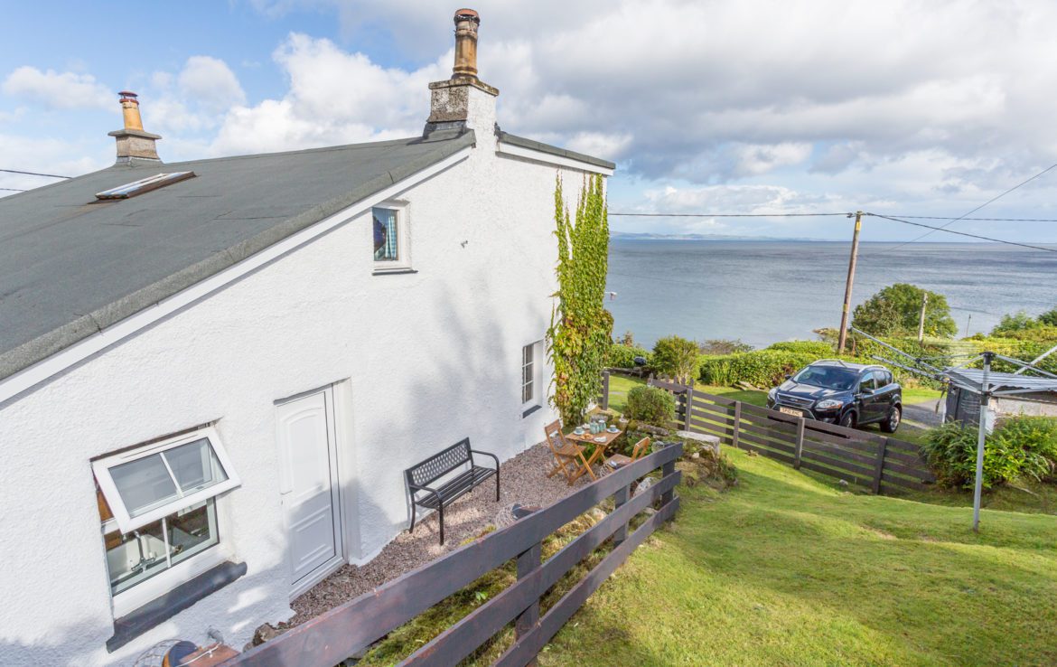 There is a terraced garden with drying area and garden furniture to the side of the cottage and at the front there is a deck with seating facing the sea – an ideal place for al fresco dining.
