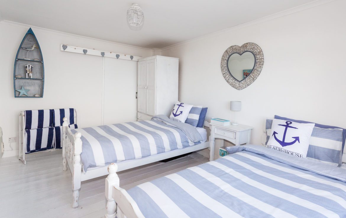 2 Bedrooms – one with double bed and single bed and the other with twin beds. (Electric blankets on beds upstairs for the chilly months!).