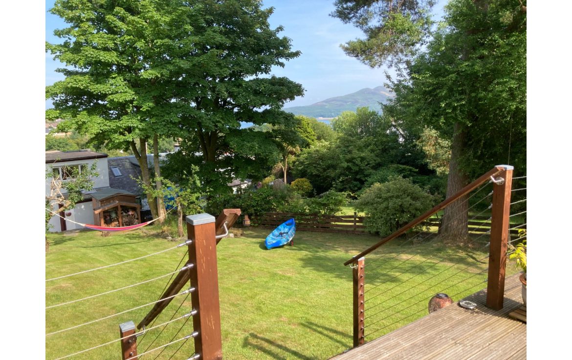 North Cottage is situated directly opposite the 18th green at Lamlash Golf Course and offers a stunning elevated view of the sea and Holy Isle. Both front and rear gardens are fully enclosed, private and offer a number of spots to sit. The extensive rear garden rises on a slight gradient to a sizeable decking area, complete with garden furniture and loungers. Spend the whole day here soaking up the sun or simply relaxing and enjoying the views. A bell bbq and hammock are also available for use. A private off road parking space is available at the end of the property.
