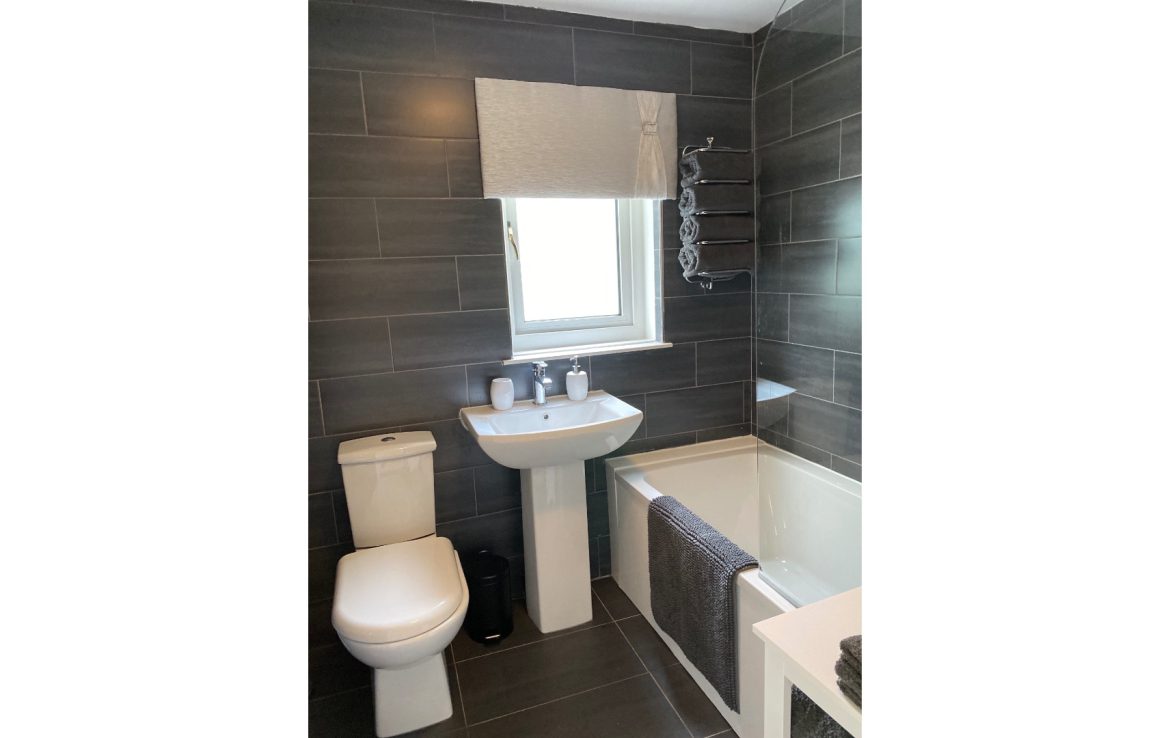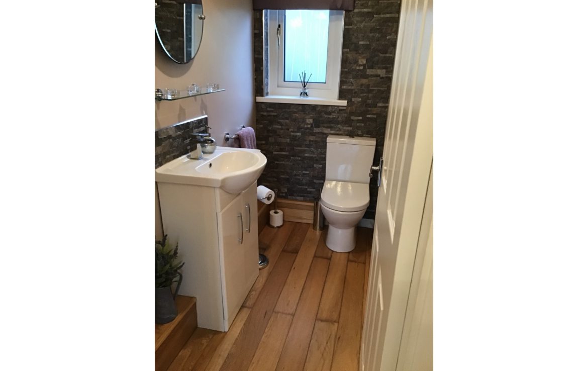The property offers both upstairs and downstairs toilets, with the upstairs having a bath and overhanging shower.