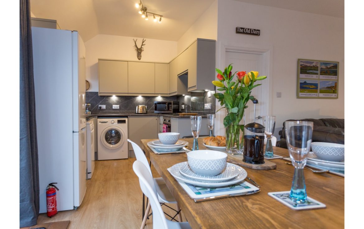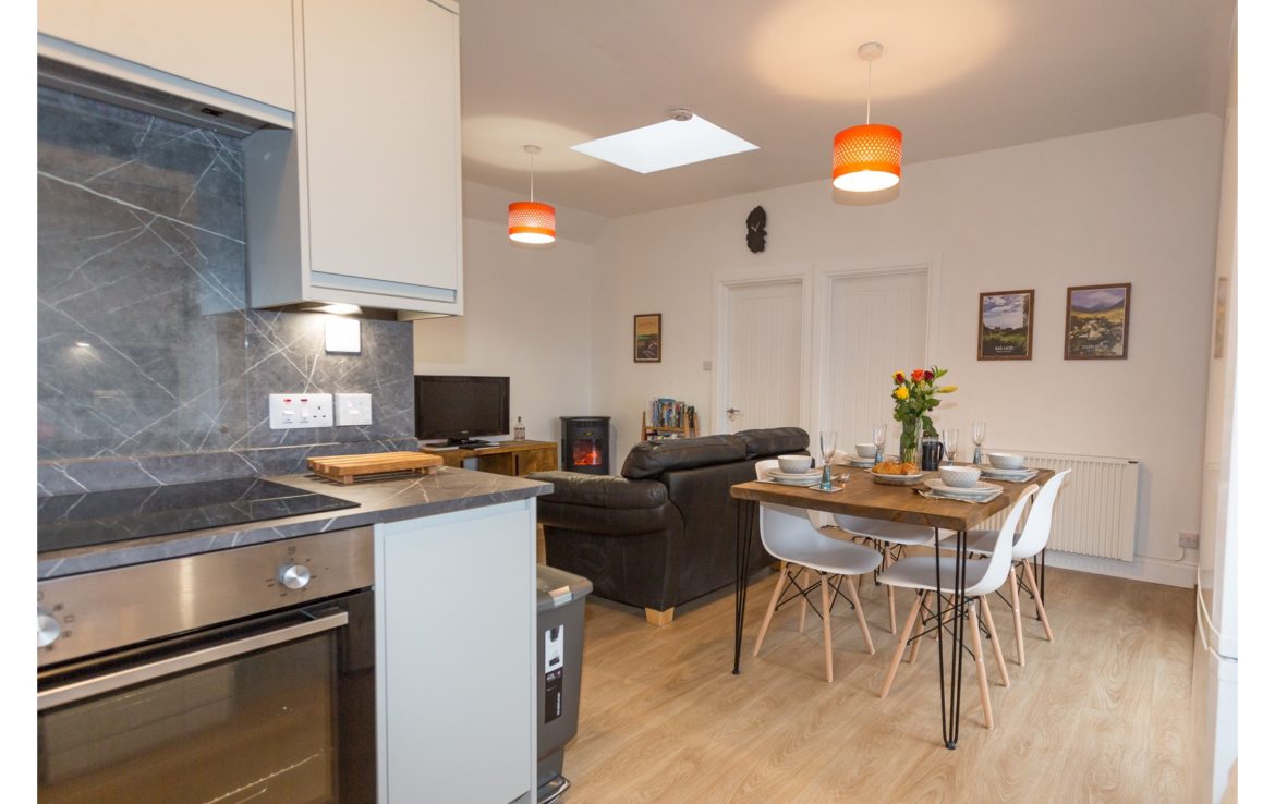 The newly fitted kitchen has brand new appliances including large fridge with freezer, BOSCH dishwasher, microwave, induction hob, electric oven and BOSCH washer/dryer. In the lounge area the television and Freesat box enable access to free and on demand television including BBC iPlayer, ITV Hub (and Netflix and Amazon Prime Video for those with subscriptions). There is also a DVD player, plenty of DVDs, board games and books to enjoy during your stay.