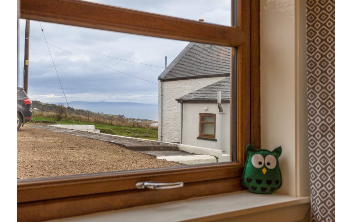 The cottage has its own private patio area immediately outside the cottage with a picnic bench and chiminea for alfresco eating. This area is accessed via patio doors providing partial sea views. In addition, there is use of an extensive grassed area which has two benches and provides breath taking sea views of Kildonan and North Ayrshire; ideal for star gazing at night.