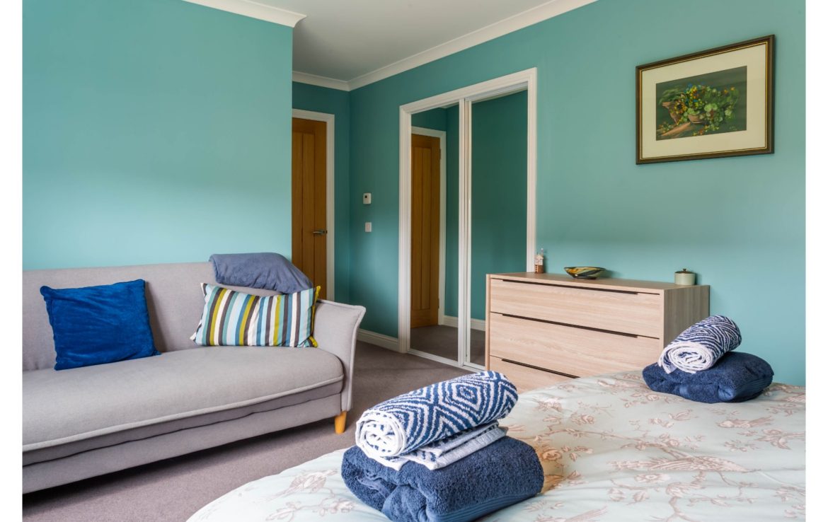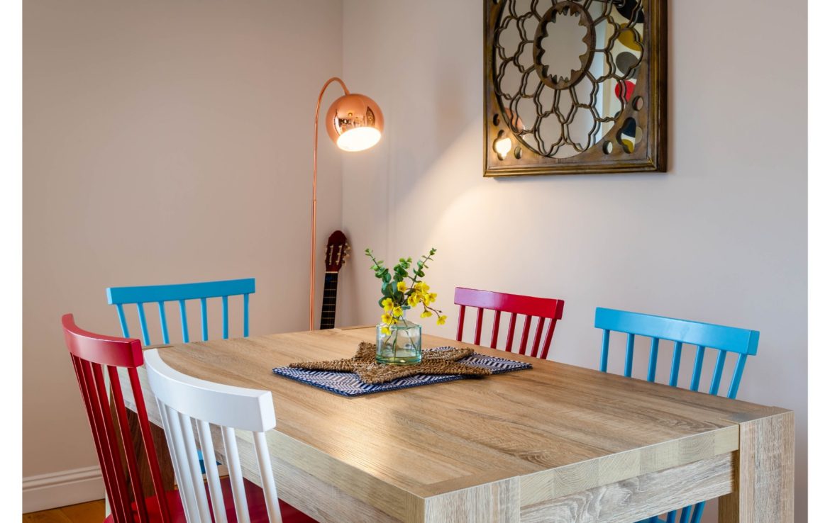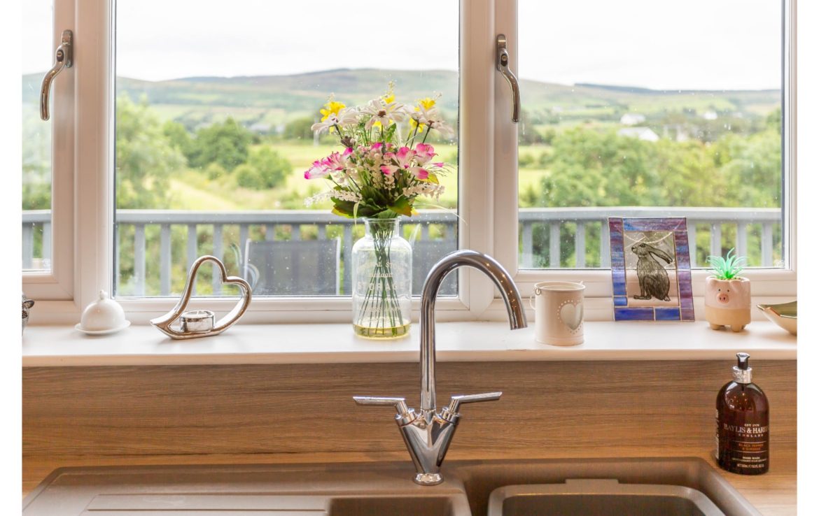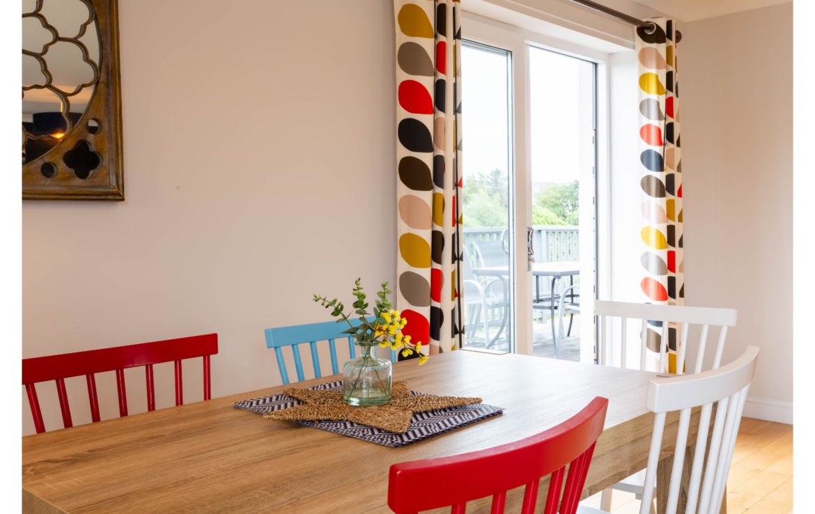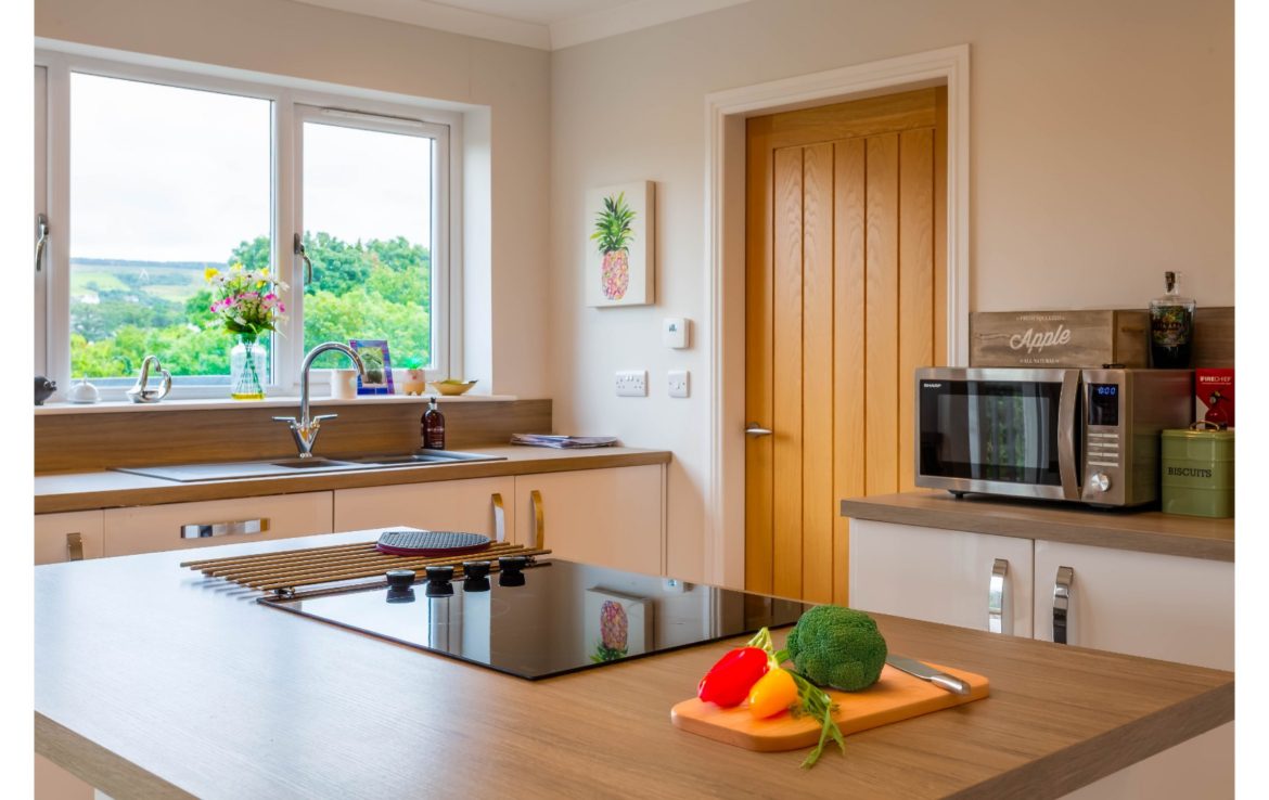 Riverside is designed with comfort and style in mind, the ground floor offers a bright, open-plan living area. Relax by the wood-burning stove while taking in breathtaking mountain views through the large windows. Seamless indoor-outdoor living: enjoy direct access via patio doors to a large deck and fully enclosed garden—the perfect sun trap for morning coffee or evening drinks. The sleek, fully-equipped kitchen—complete with a wine fridge—is perfect for social evenings.