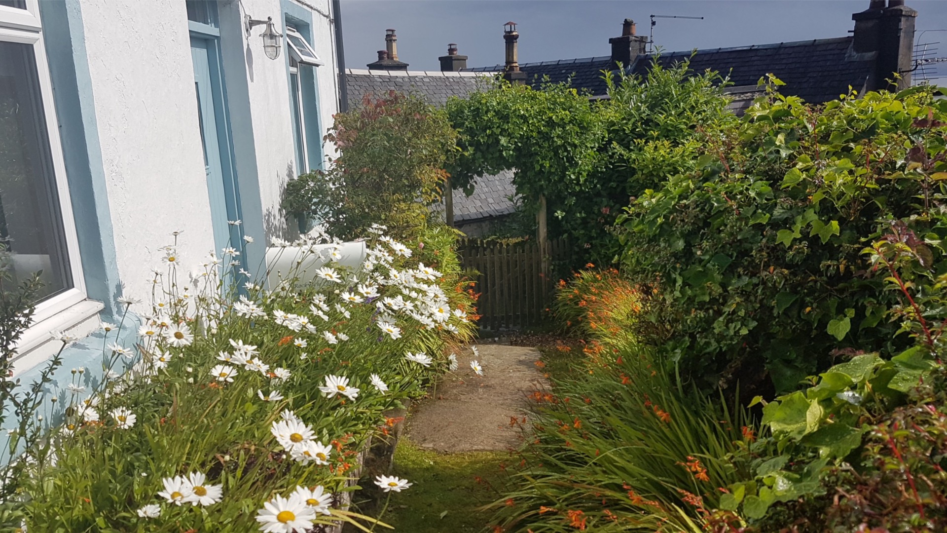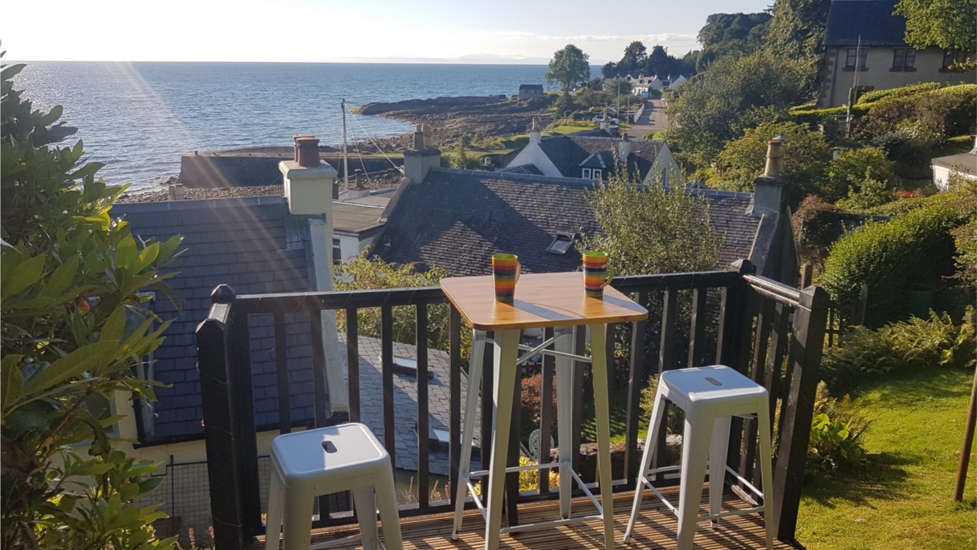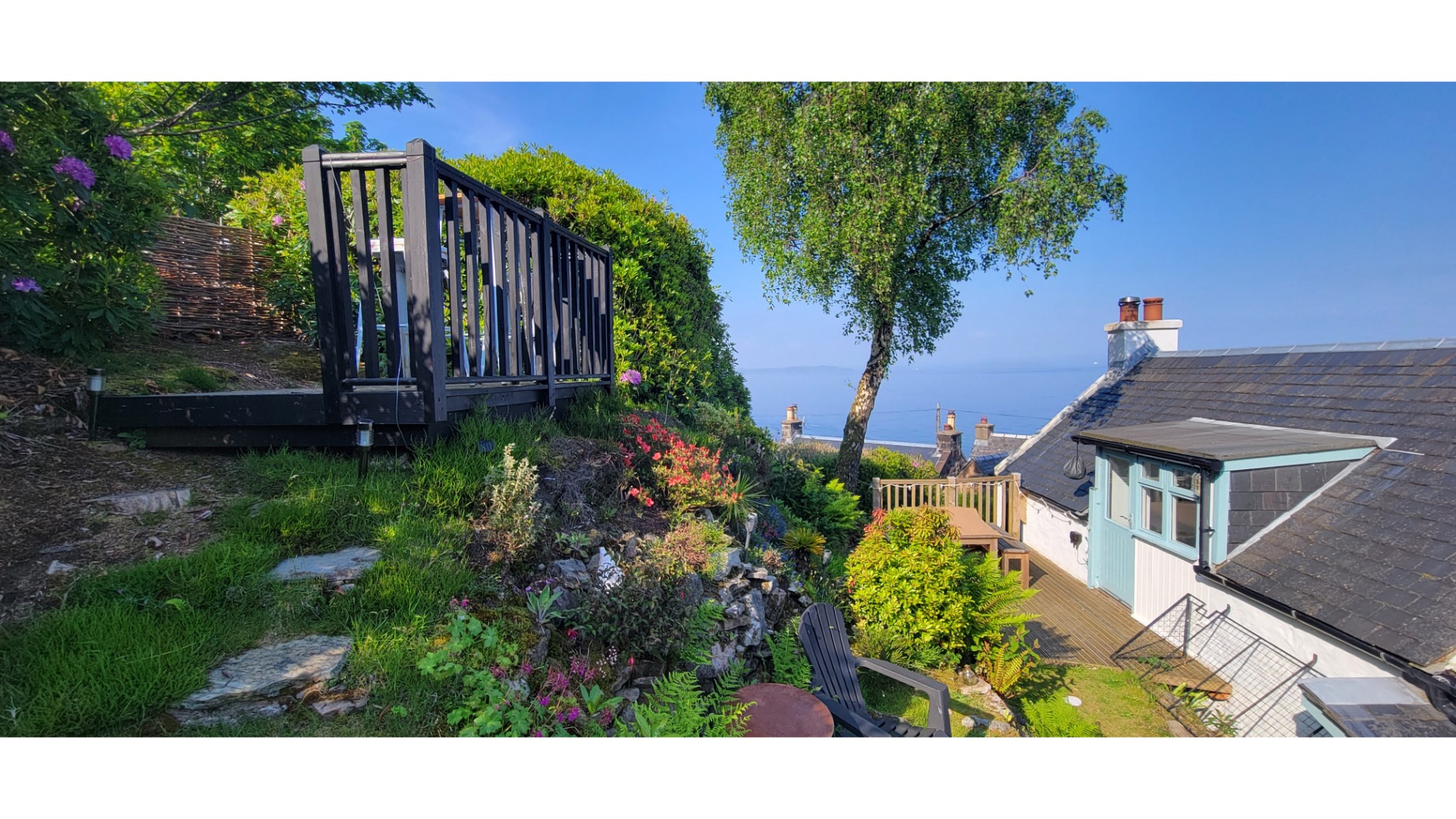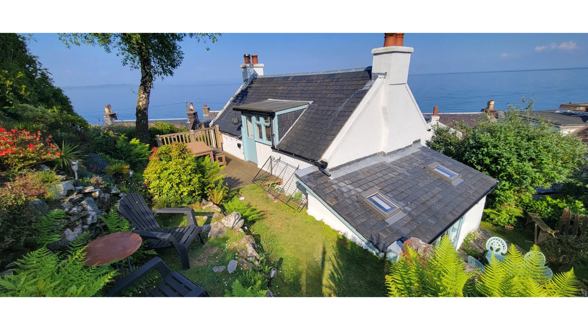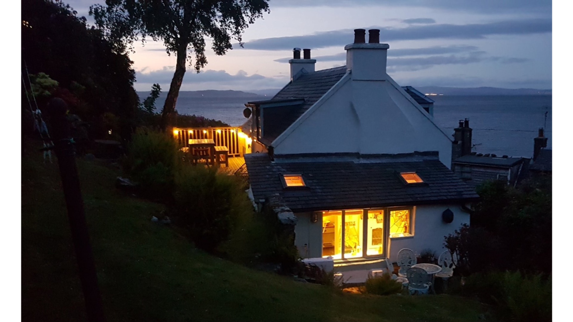 Rockview Cottage is a traditional double-fronted cottage located in the village Conservation Area, and is accessed by a pedestrian footpath near Corrie port. The elevated location of the cottage means that the bedrooms, the pretty garden and rear deck have lovely coastal views over the Clyde.