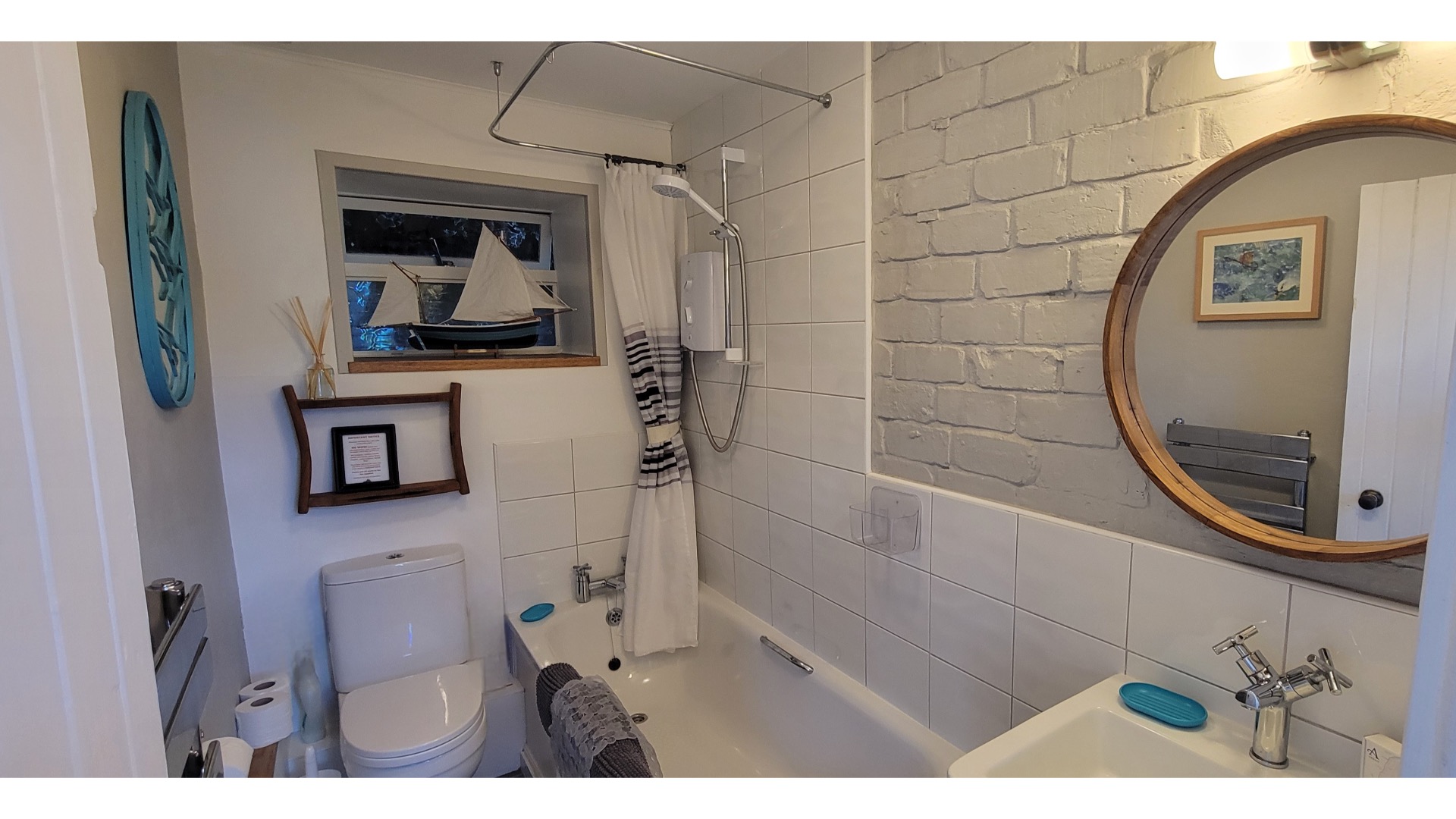 - Downstairs bathroom with under-floor heating and over-bath shower.