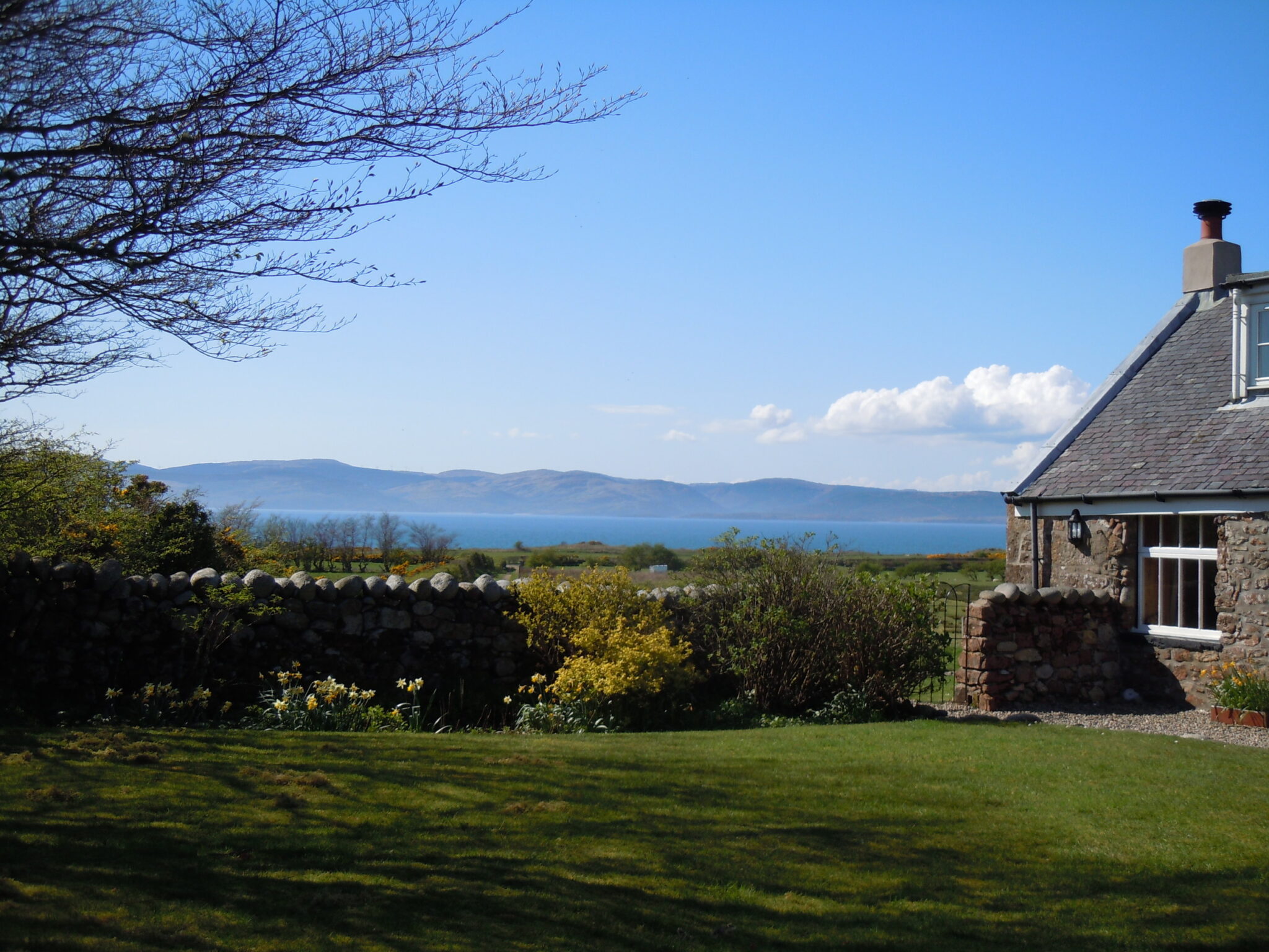 There are spectacular views across Machrie Bay and over the sea towards Kintyre and the Beinn’s.