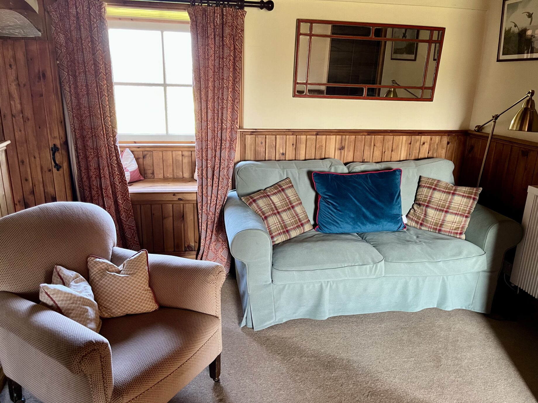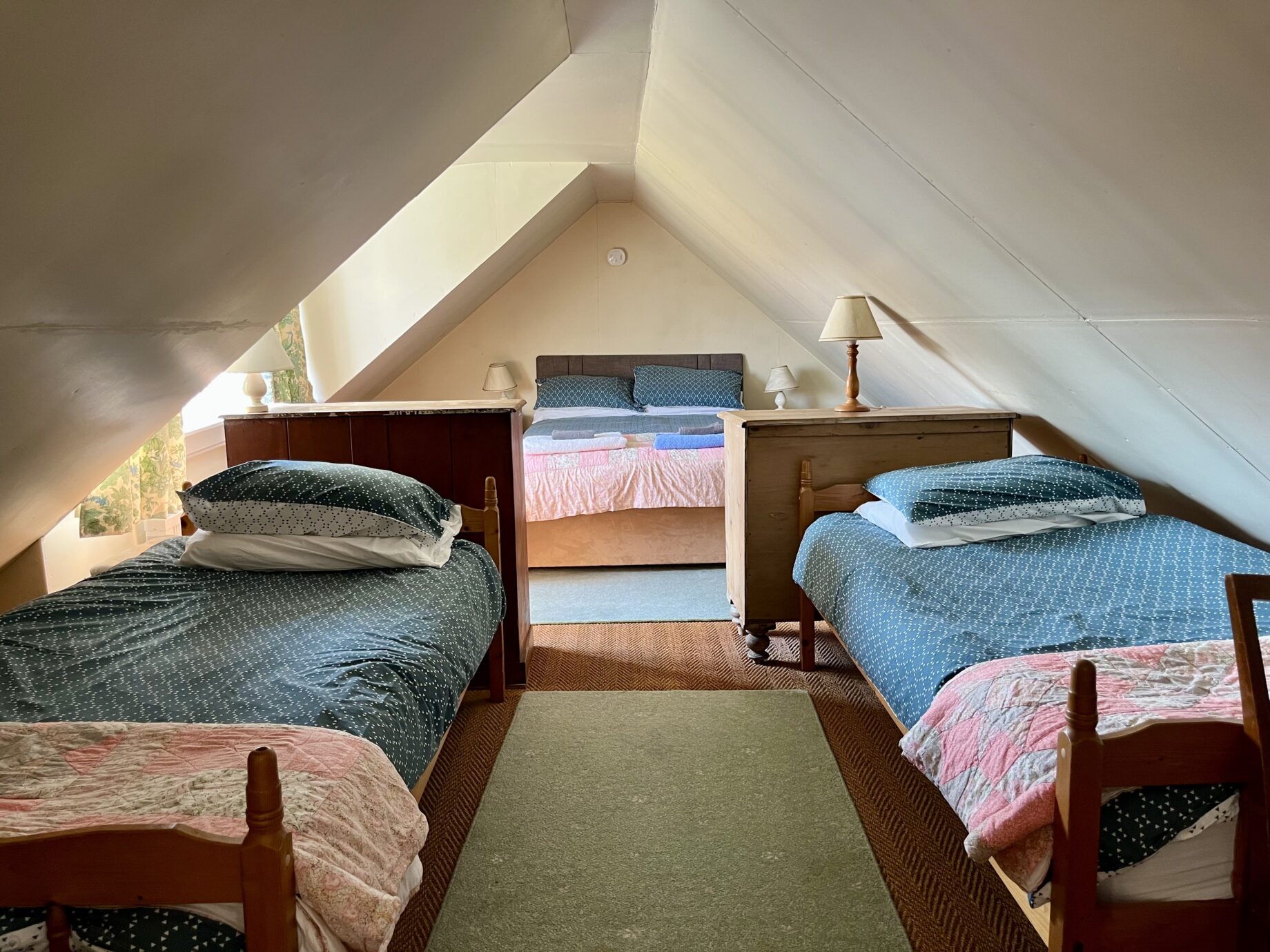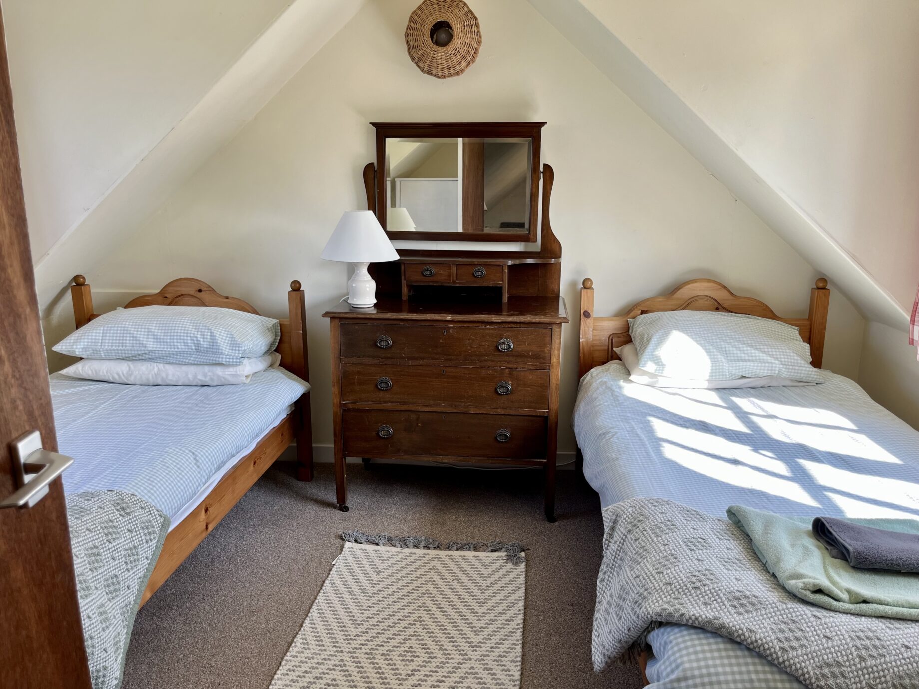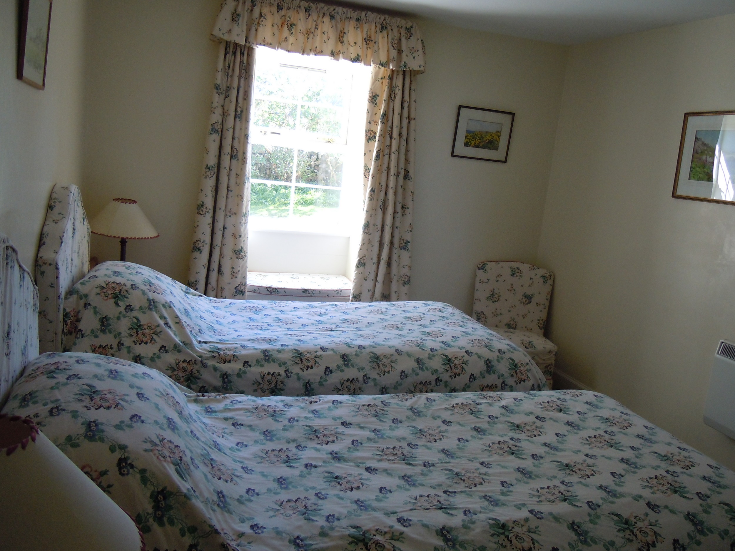 - Sleeps up to 5 people: There is 1 king size bedroom (can become a twin on request) and a twin bedroom. There is also a dressing room with a 2′ 6″ single bed. Both bedrooms are en-suite, one with a separate walk-in shower.