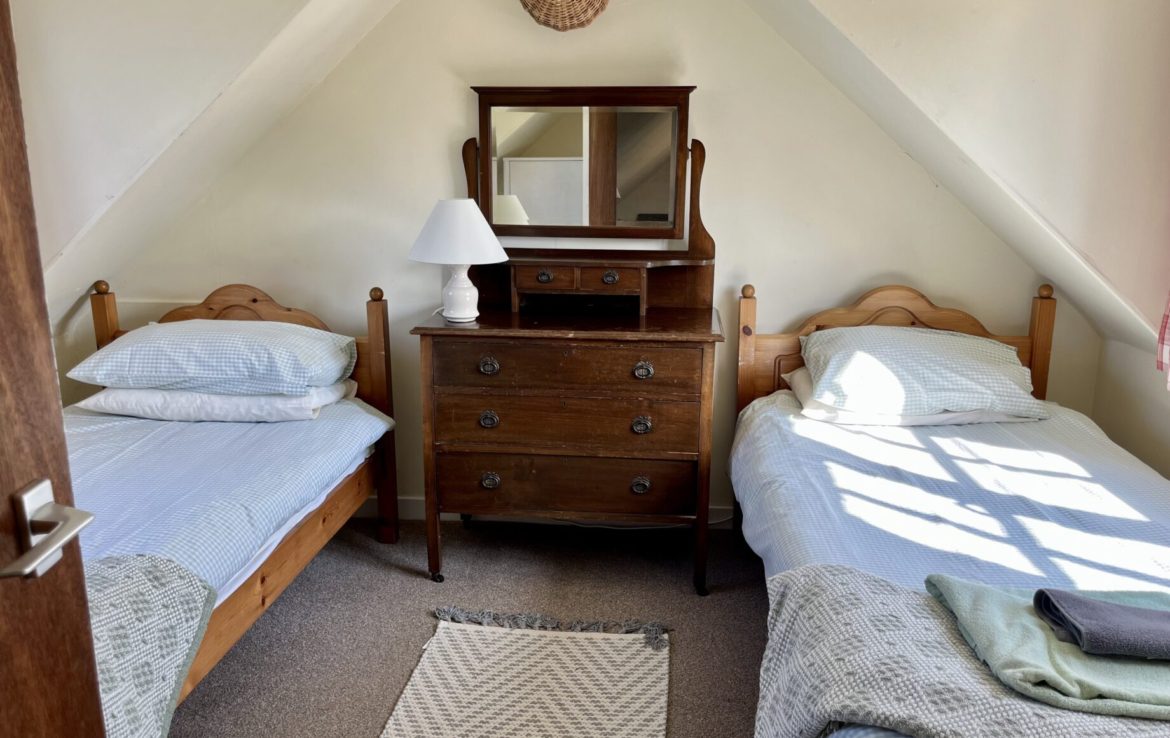 Sleeps up to 5 people: There is 1 king size bedroom (can become a twin on request) and a twin bedroom. There is also a dressing room with a 2′ 6″ single bed. Both bedrooms are en-suite, one with a separate walk-in shower.