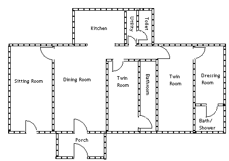 The cottage is all on one level, with a step up to the sitting room and is entered by a large south facing porch with plenty of room for two to three people to sit.