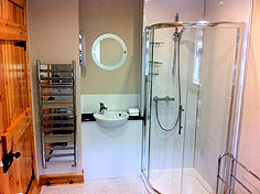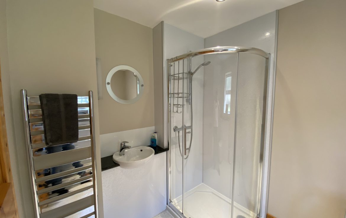 Ground-floor bathroom with shower, WC, hand basin and shaving point.