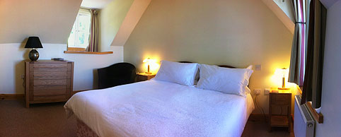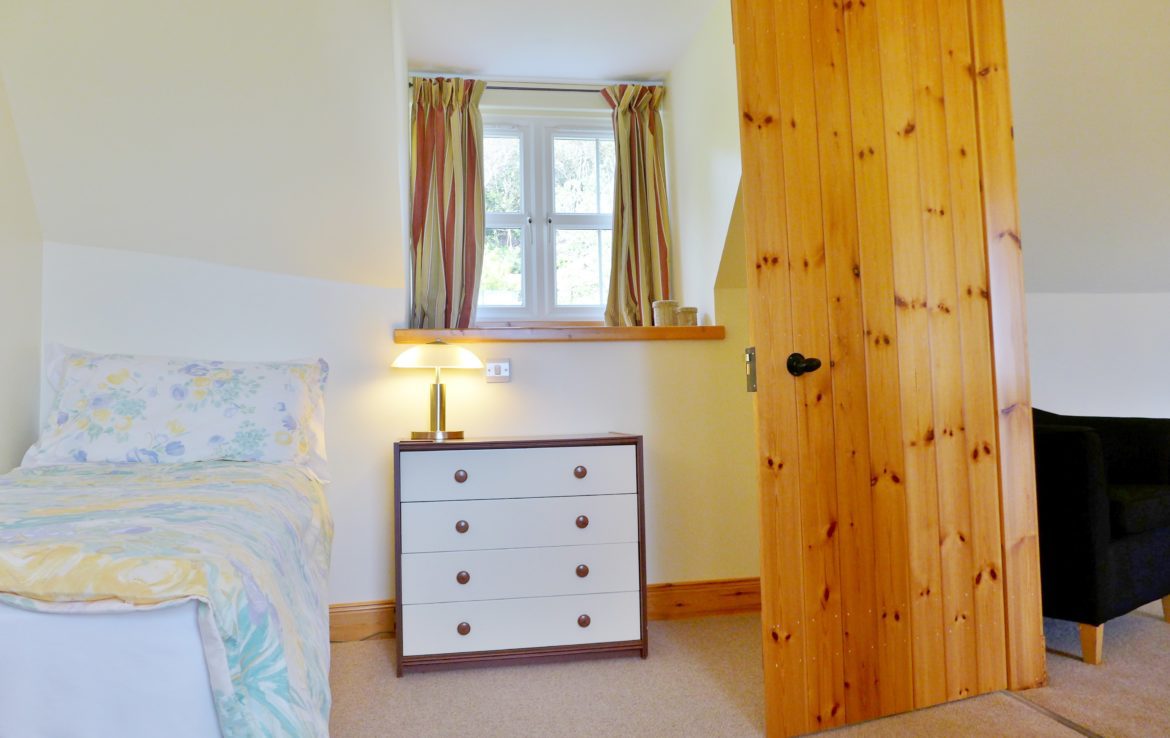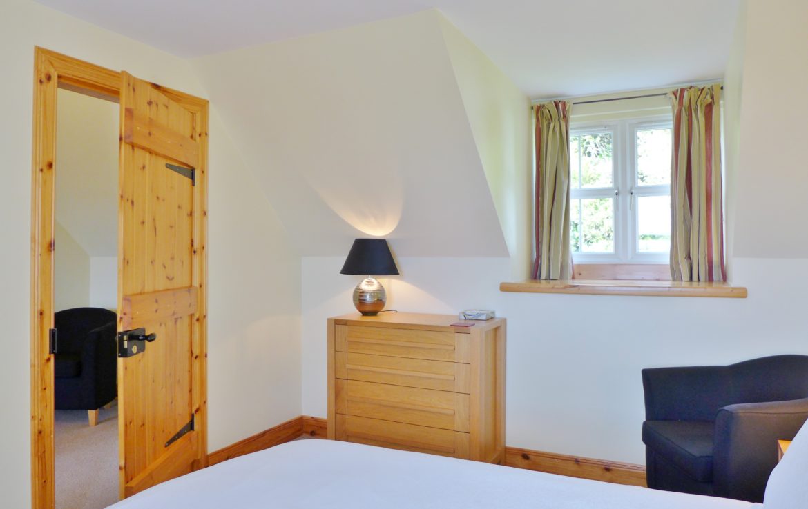 Bedroom upstairs with king size bed with views to both front and rear of the cottage.