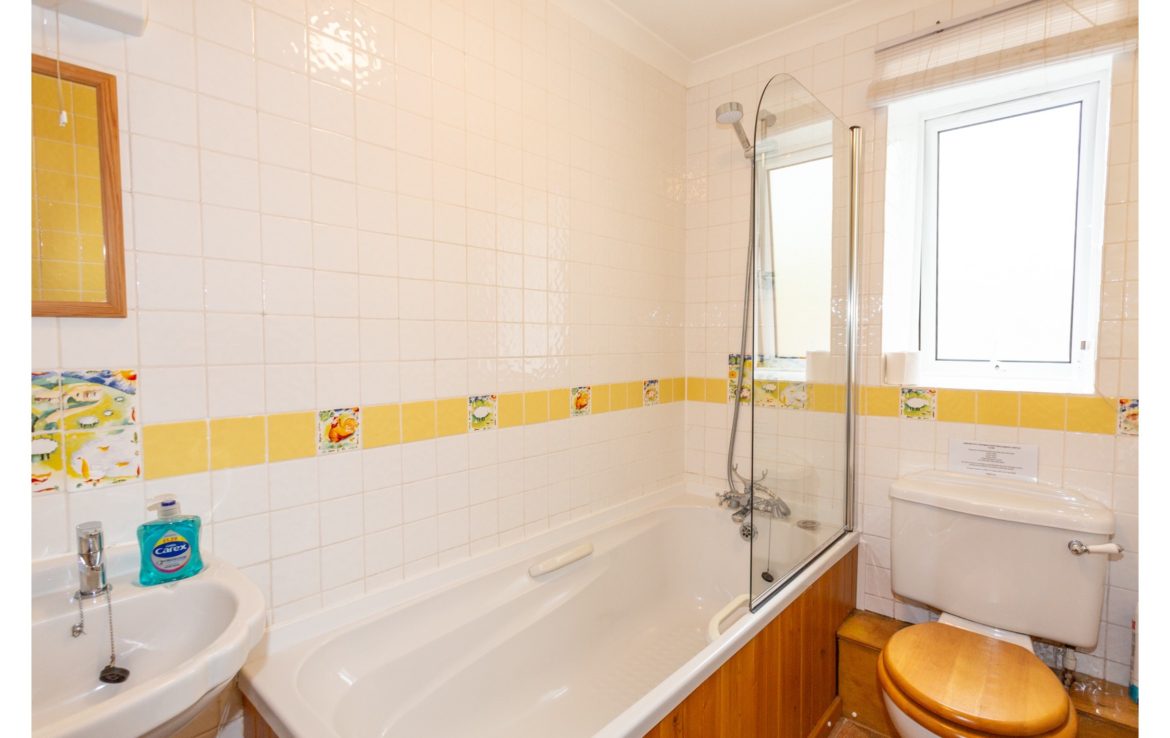 Bathroom: With shower over bath, toilet and heated towel rail.