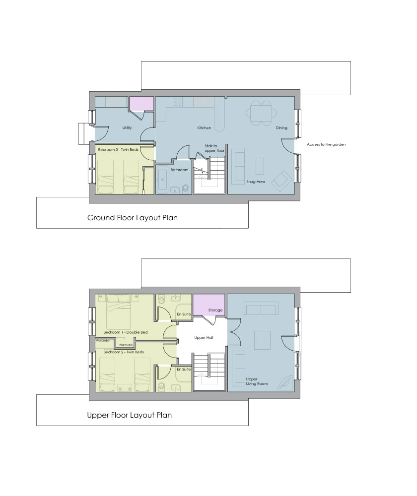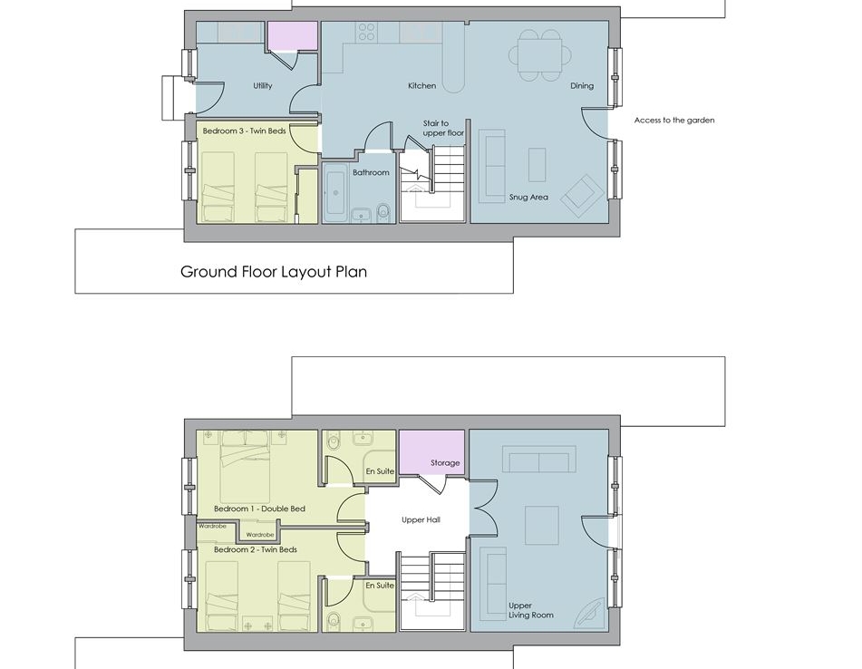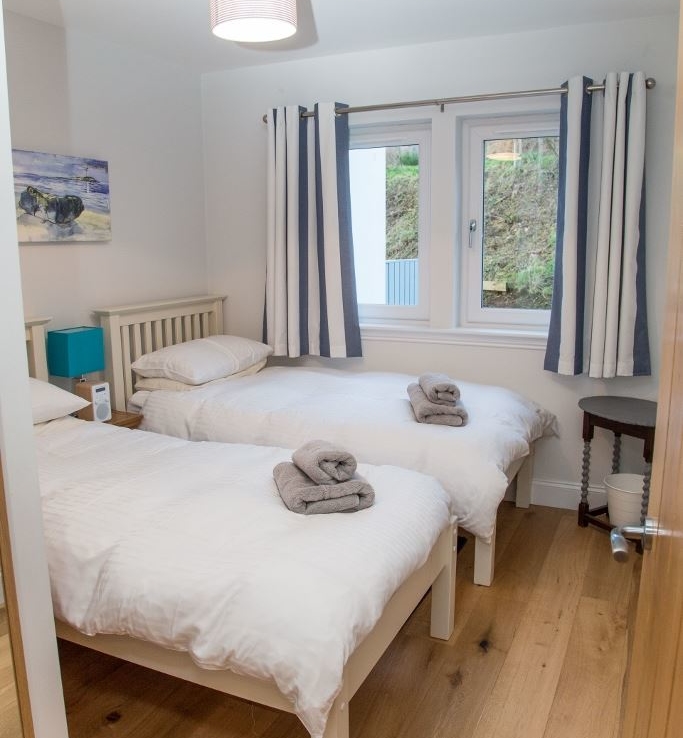 Sleeps 6 in 1 Double en suite, 1 Twin en suite and 1 ground floor Twin sharing the family bathroom.