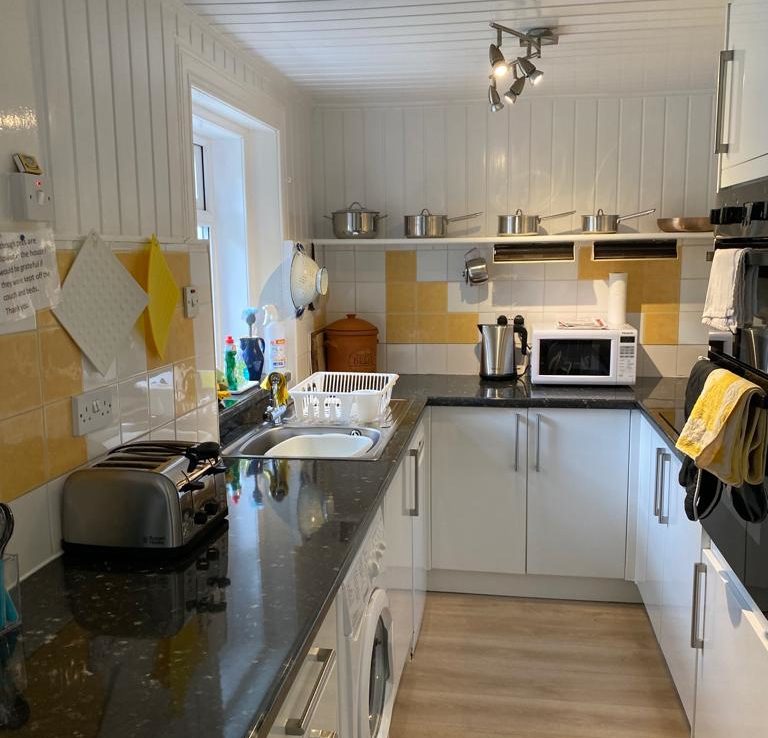 Situated in the village of Lochranza and just yards from the shore, this ground floor apartment within a detached house has stunning sea views to the Kintyre coastline from the living room and double bedroom. From the village, with its distillery and restaurant, you can take the short ferry trip to Claonaig and explore Kintyre with ferries to the islands of Islay, Jura and Gigha all easily accessible. The PS Waverley calls in at Lochranza at various times throughout the summer. The owners occupy the flat above, and your privacy is assured throughout your stay. Please note that entry to the house is through the back door for ongoing covid protection.