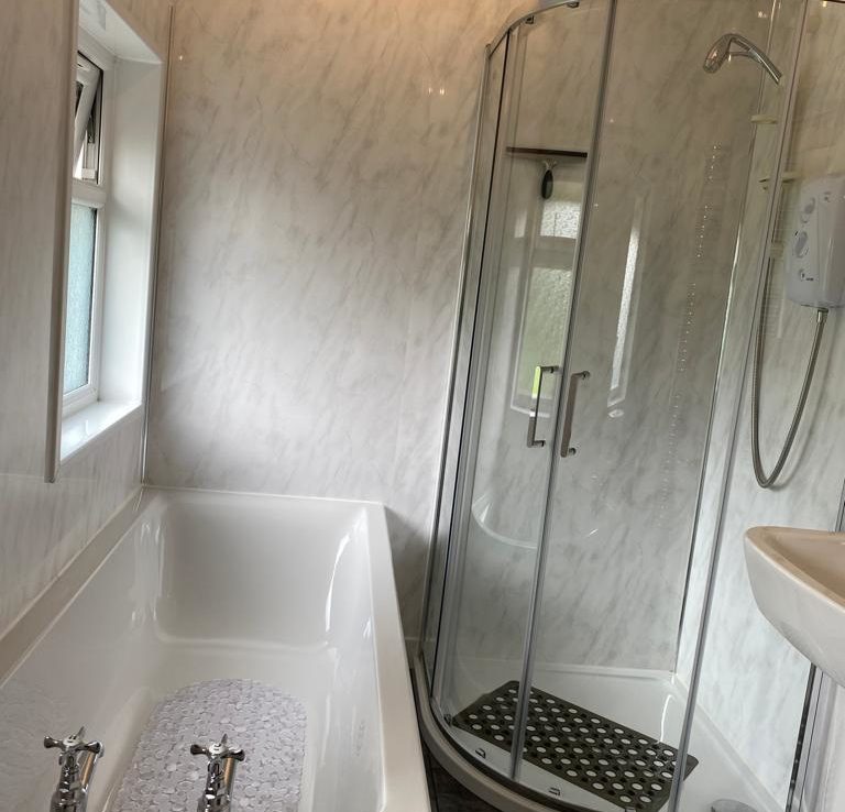 Living room: With 40″ Sky TV (with Sports package), DVD player and CD player.